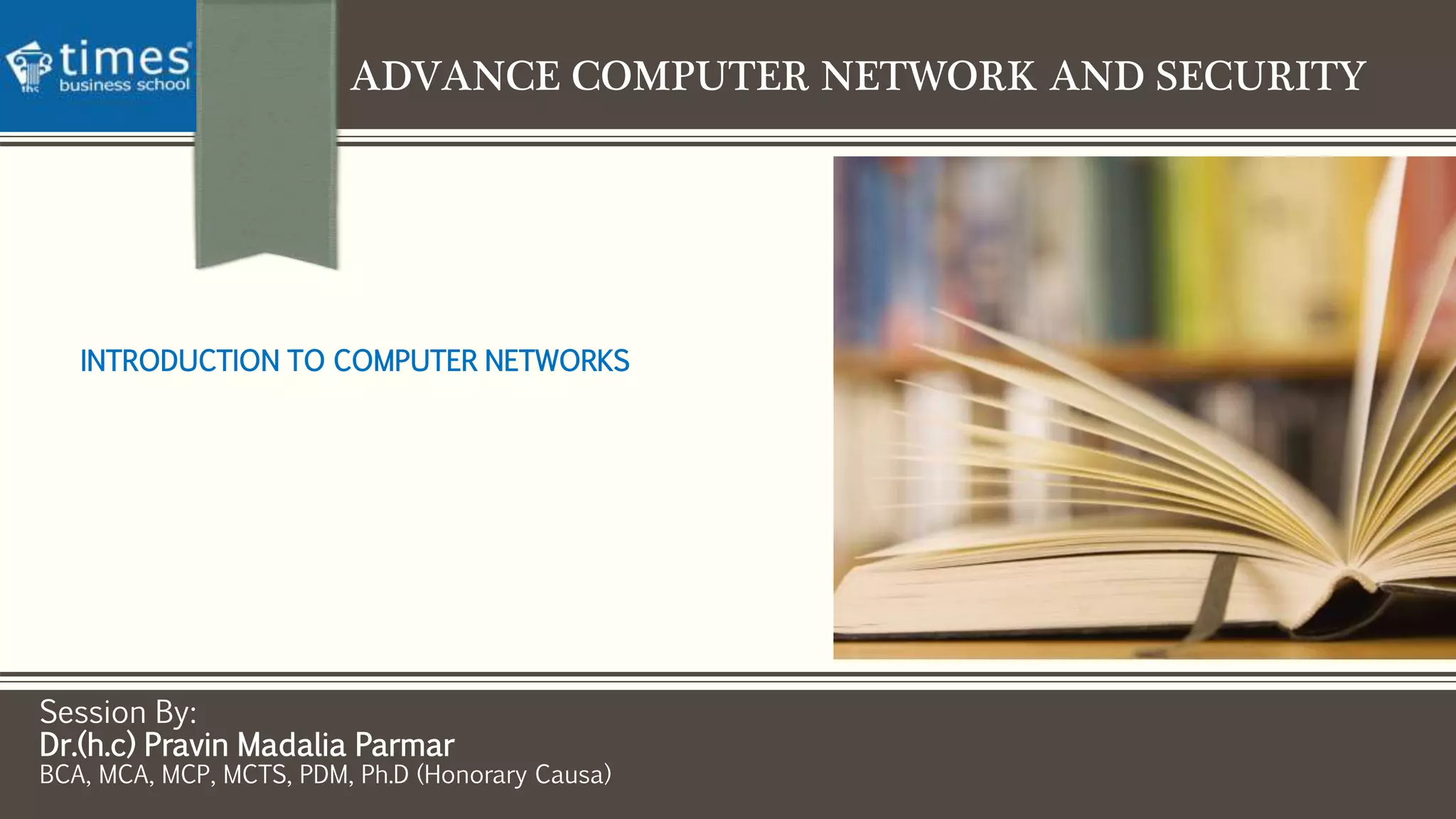 This document provides an introduction to computer networks. It defines different types of networks including LAN, MAN, and WAN. It describes how networks allow for resource and information sharing and communication capabilities. The document outlines different network topologies such as bus, star, ring, mesh and explains the components that make up a network including physical media, connecting devices, computers, networking software and applications. It provides details on clients, servers and the TCP/IP networking protocol. The document is presented by Dr. Pravin Madalia Parmar and provides a comprehensive overview of computer networks.