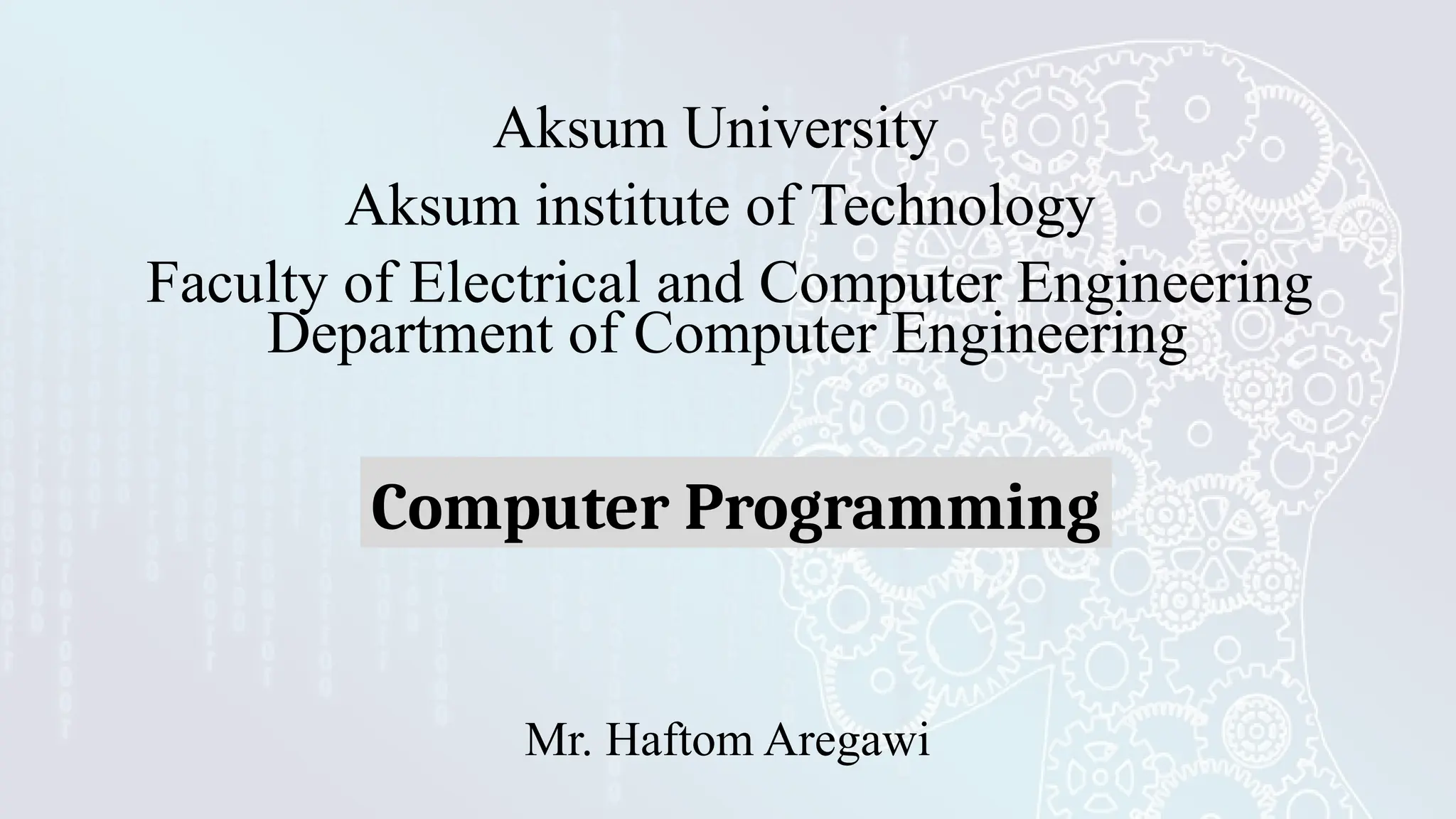 The document outlines a computer programming course curriculum from Aksum University, covering fundamentals of computers, programming structures, and the evolution of programming languages. It details the hardware and software components of computers, explaining their functionalities and interrelations. Additionally, it discusses the representation of numbers in computers and the architecture of a computer system.