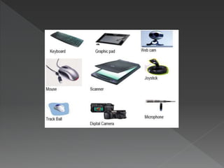 A computer consists of both hardware and software. The hardware includes the physical components like the central processing unit (CPU), memory chips, storage devices, input/output ports and devices. The CPU processes instructions stored in memory to accept data as input, process it, produce output, and store information. Common storage devices include hard disk drives, optical drives like CD/DVD drives, and flash memory drives. Software includes the system software that controls the hardware and basic functions, as well as application software that allows users to perform specific tasks.