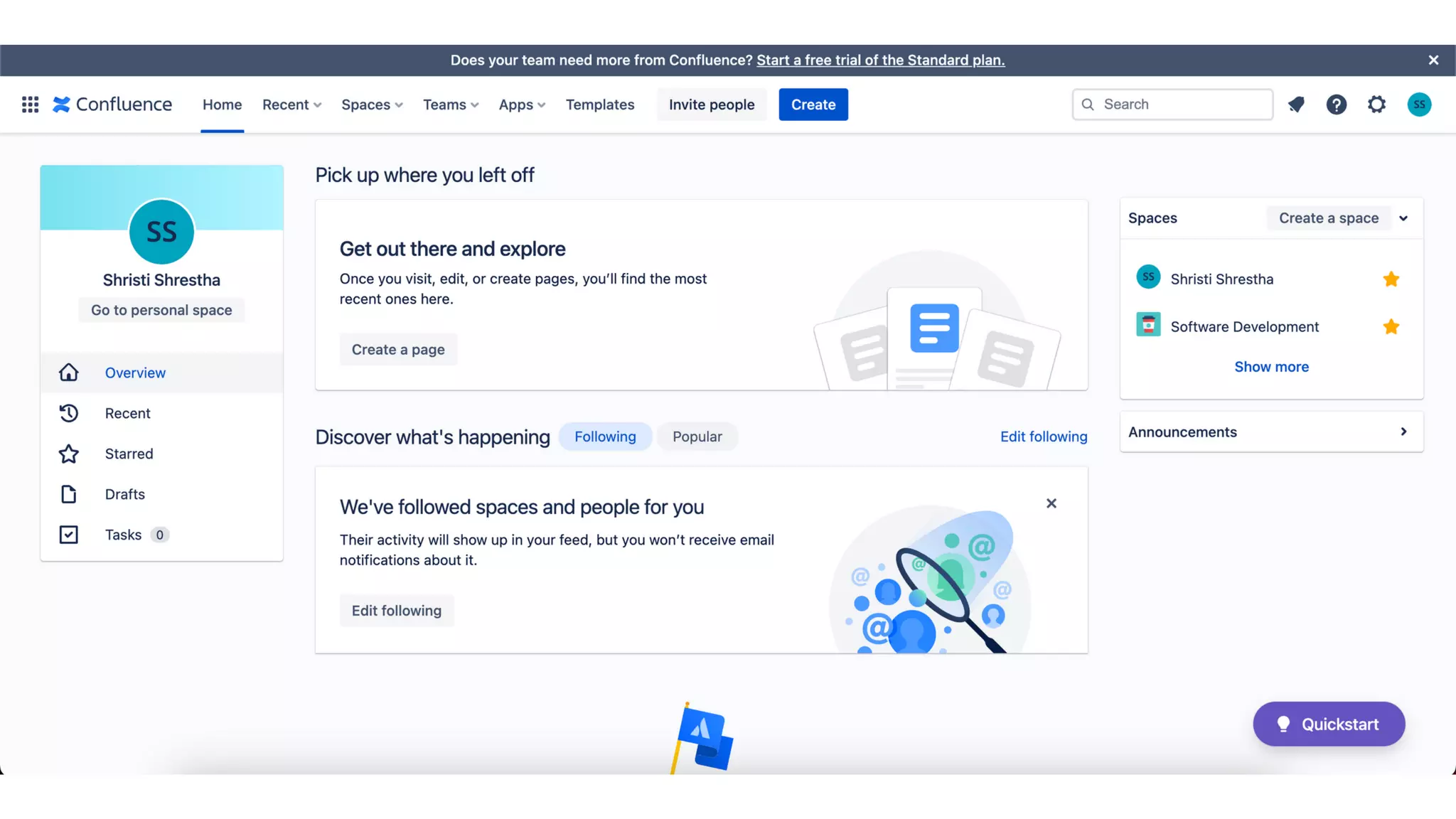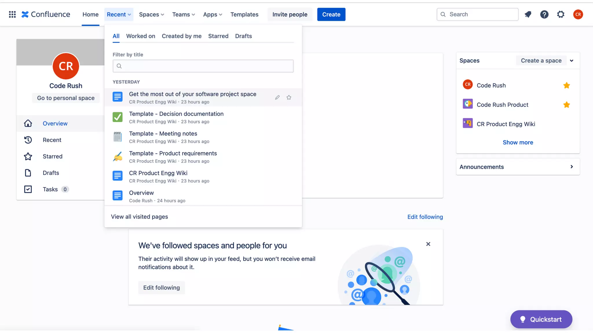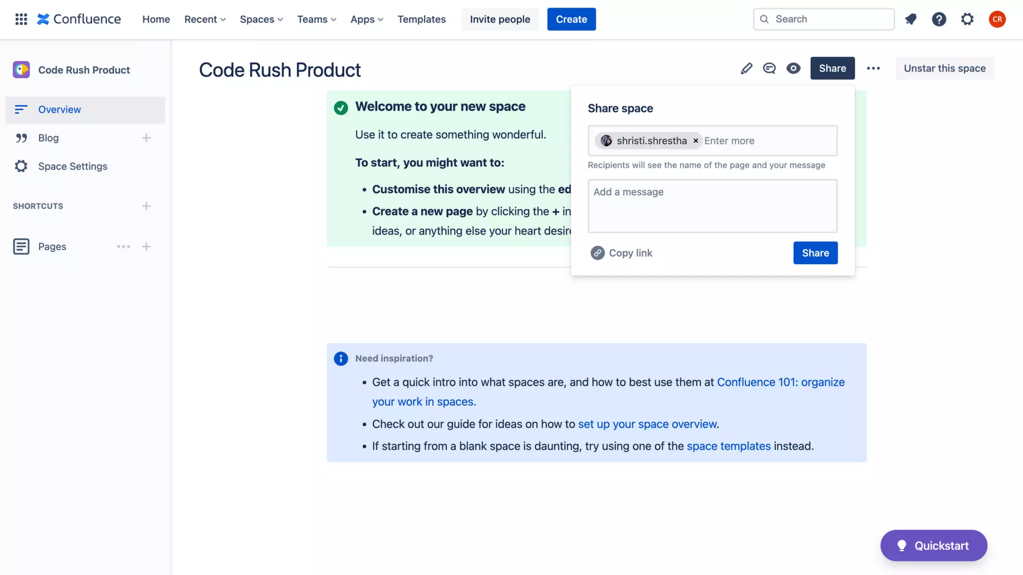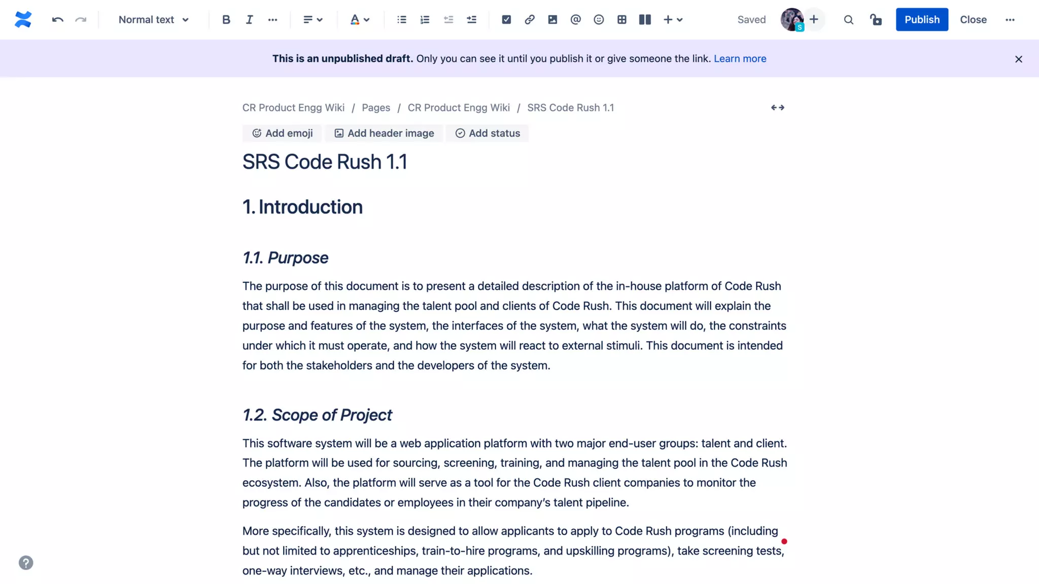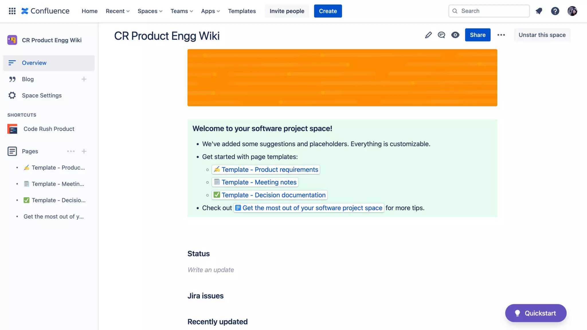 The document introduces Confluence, a wiki application designed for collaborative editing and knowledge management within teams, contrasting its purpose with that of Jira, which focuses on project management. It outlines key concepts such as pages, macros, and spaces, explaining how to organize content and utilize templates. The guide also covers getting started with Confluence, including creating personal and team spaces, and provides brief instructions on connecting to Jira and creating pages.