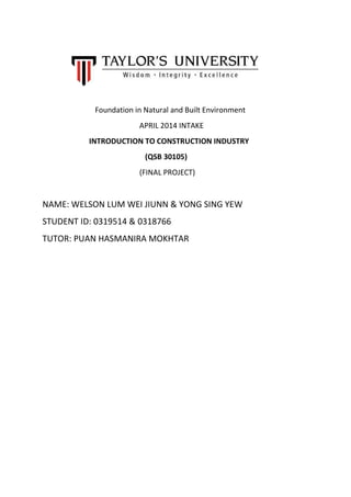 This document summarizes a student project to design a recreational area on a 30m x 30m plot of land beside Taylor's University Lakeside Campus. The proposed design includes a fishing platform on the lake, grass flooring, gazebos, benches, LED lighting, and other amenities. The purpose is to create a green space for students to relax and socialize. A site analysis found the current area gets hot with little shade. The proposed design aims to address this with trees and shelters. The recreational area would allow activities like fishing, barbecuing, and outdoor studying. The total estimated cost is RM20,300.