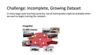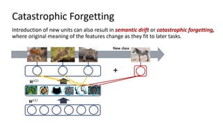 Continual learning involves building machine learning systems that can learn continuously over time from new data and tasks while retaining knowledge from previous learning. This mimics how humans learn throughout their lives. However, continual learning faces challenges like catastrophic forgetting where new learning interferes with past knowledge. Potential solutions involve balancing plasticity to learn new things with stability to retain old knowledge. The field is still new with experiments focused on simple tasks, but continual learning could enable increasingly intelligent systems that learn forever.