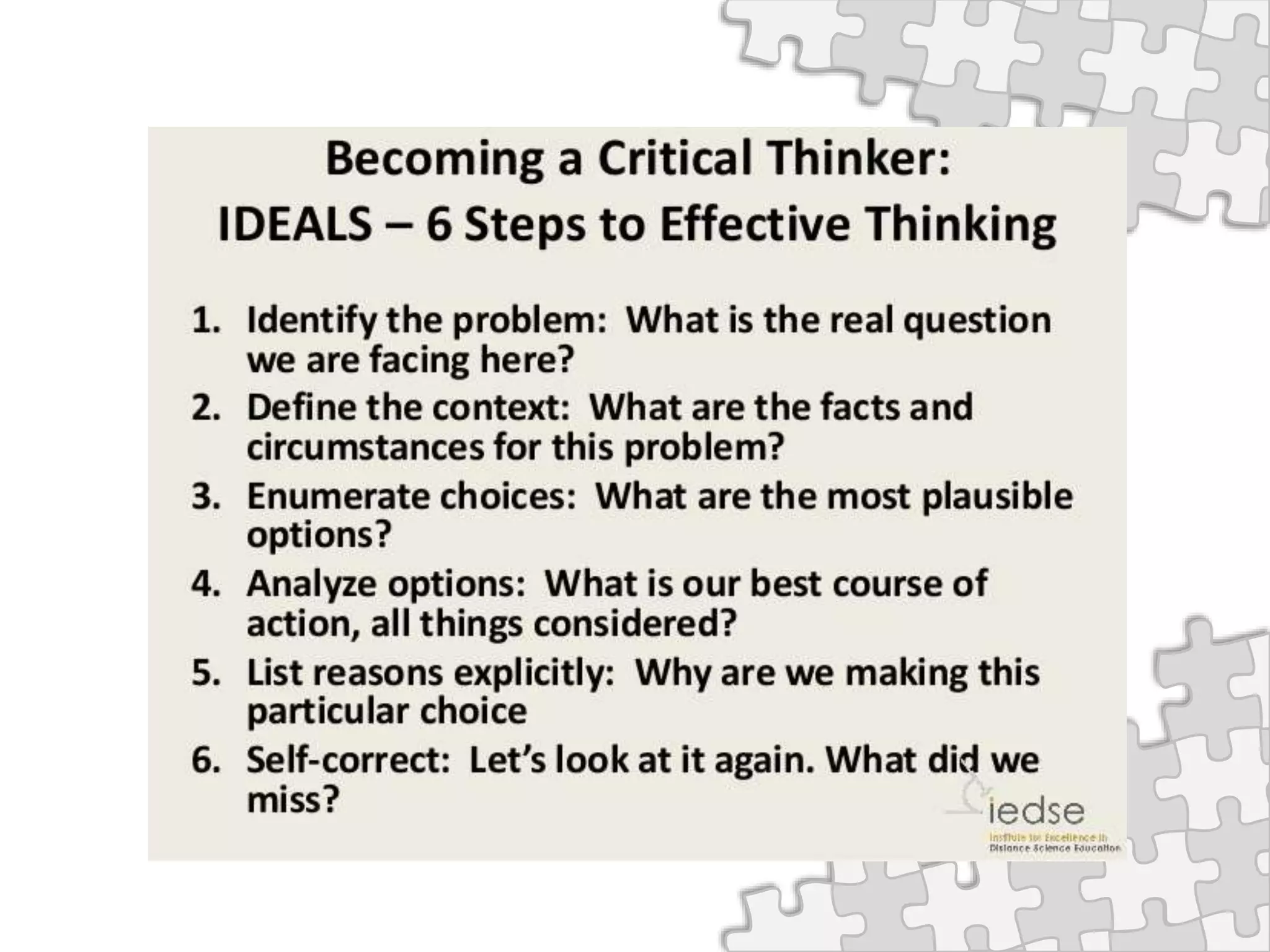 – Describe the process of critical thinking