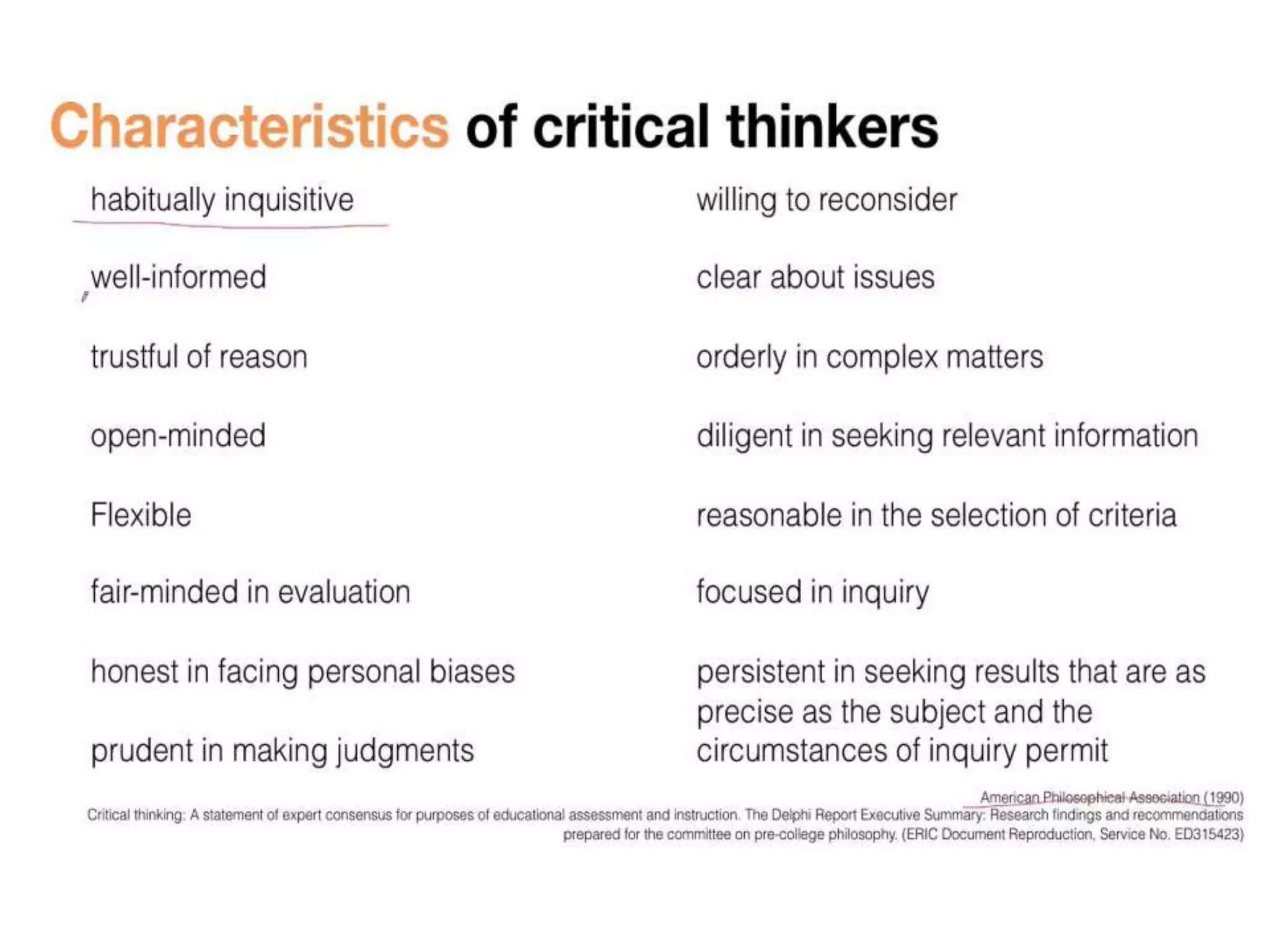 – Describe the characteristics of a critical thinker