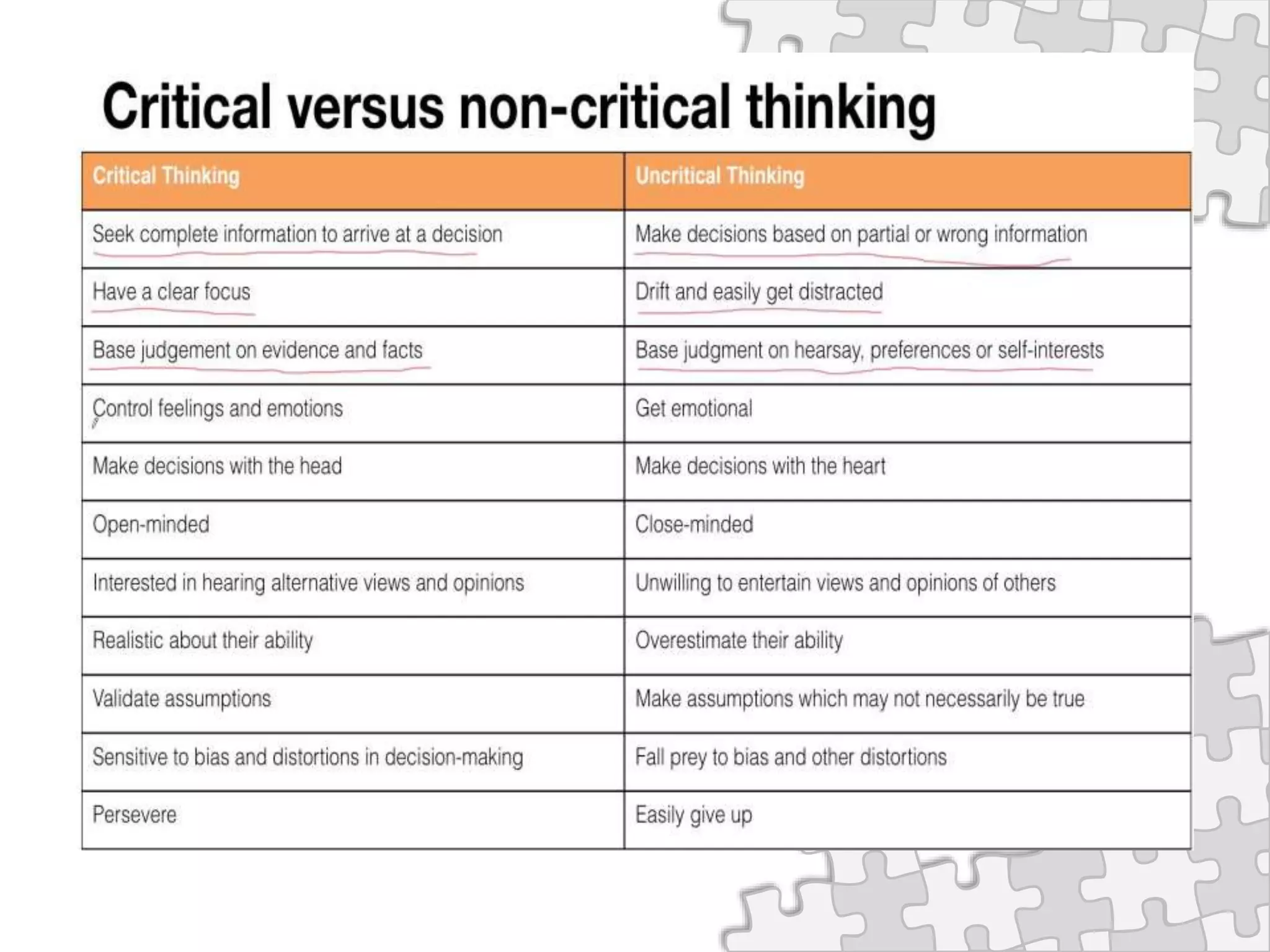 – Highlight the importance of critical thinking for a