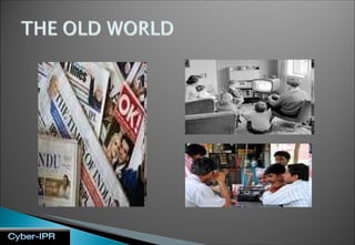 This document provides an introduction to cyber law. It discusses how the internet and technology have evolved over time to connect people to information and each other. It also notes some of the risks that have emerged with technology, such as cyber crimes. The document then defines cyberspace and discusses some key aspects of it, such as its lack of boundaries and potential for anonymity. It concludes by outlining some penalty provisions under cyber law for offenses related to unauthorized access and harming computers/networks.