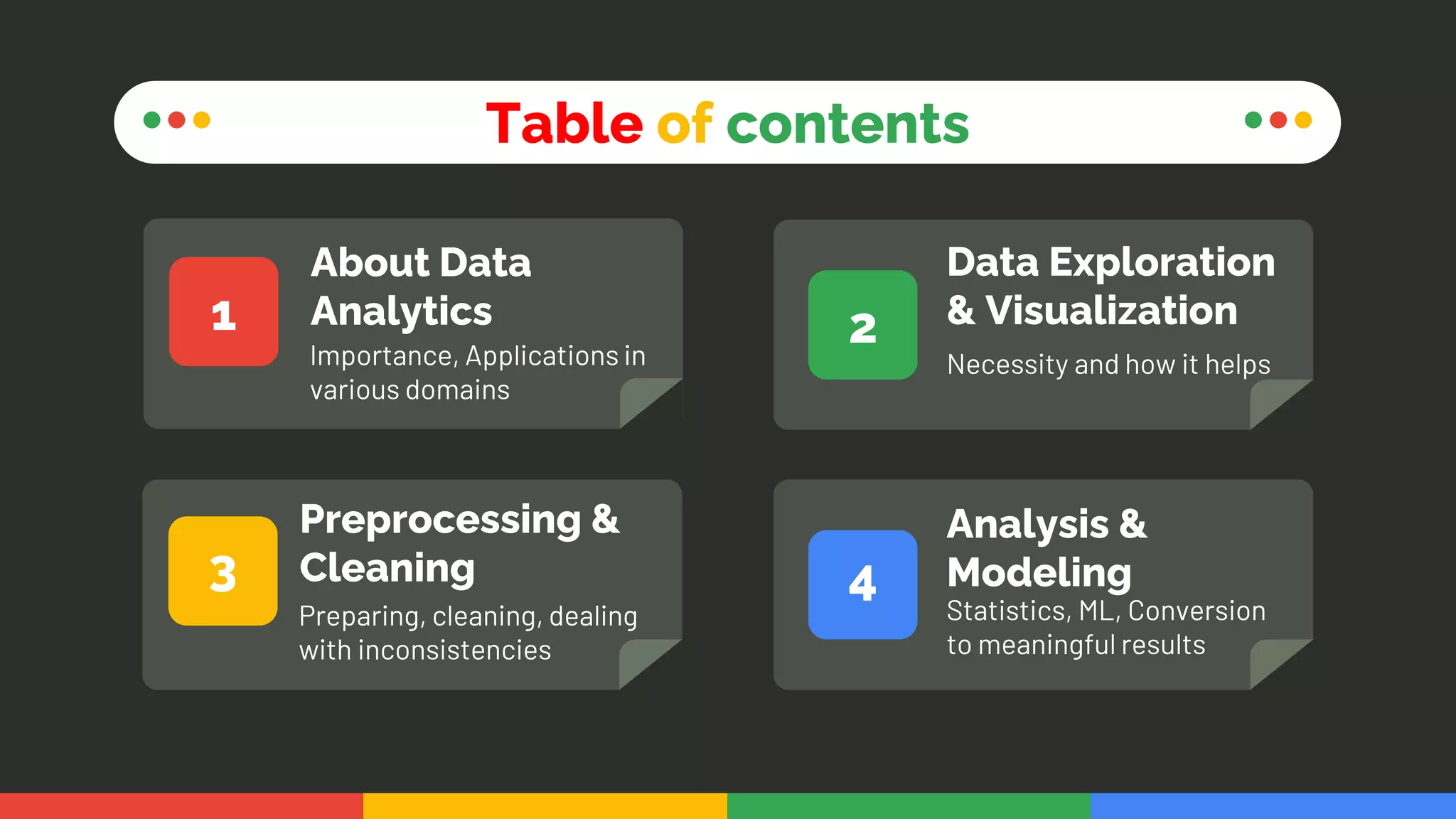 This document provides an introduction and overview of data analytics and machine learning. It discusses the importance of data analytics, how it can be applied in various domains like healthcare, finance and marketing. It covers topics like data exploration, preprocessing, cleaning, analysis and modeling. It also discusses tools used in data analytics like Kaggle, Google Looker Studio, Tableau and Power BI. The document emphasizes the need for data visualization and explores ethical and privacy issues around data.