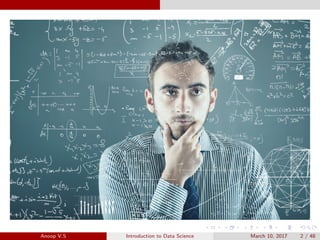 This document provides an introduction to data science and analytics. It discusses why data science jobs are in high demand, what skills are needed for these roles, and common types of analytics including descriptive, predictive, and prescriptive. It also covers topics like machine learning, big data, structured vs unstructured data, and examples of companies that utilize data and analytics like Amazon and Facebook. The document is intended to explain key concepts in data science and why attending a talk on this topic would be beneficial.