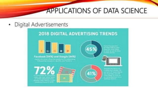 The document provides an overview of data science, defining it as an interdisciplinary field focused on extracting insights from large datasets through algorithms and processes. It highlights the growing demand for data science roles, predicts millions of job openings, and explains the relationship between data science and artificial intelligence. Key prerequisites for becoming a data scientist include knowledge of programming languages like Python and R, as well as skills in statistics and machine learning.