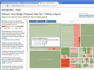 Data visualization is used across many industries like internet companies, media outlets, sports leagues, banks, retailers, manufacturers, telecom companies, science, healthcare and government to process, analyze and visualize data. The document lists examples of companies in each industry that utilize data visualization and mentions Python and HTML as prerequisites for working with data visualization.