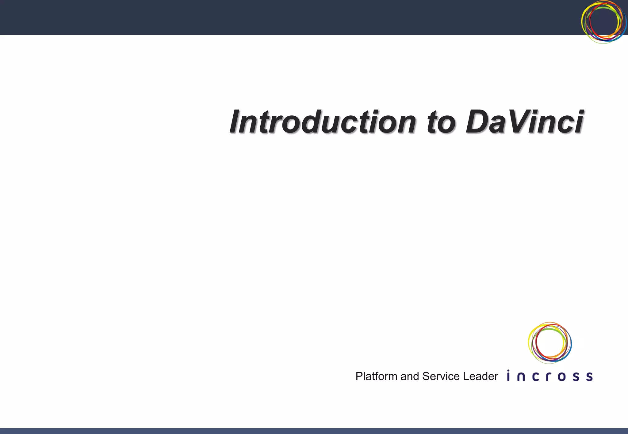 1. DaVinci is a platform and framework for developing multi-screen applications. It includes tools like a WYSIWYG editor, CSS editor, resource manager, and animation editors.
