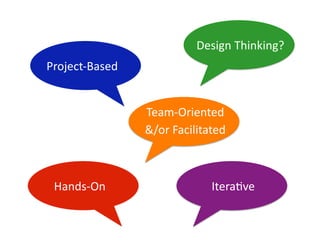 This document provides an introduction to design thinking, outlining the iterative design process and how it can be applied to develop resilient and sustainable business strategies. It describes the key stages of design thinking - understand, define, synthesize, ideate, prototype, and test. Various design thinking tools and techniques are also introduced, such as empathy maps, storytelling exercises, and the "5 Whys" problem-solving method. Resources for further exploring design thinking approaches are recommended.
