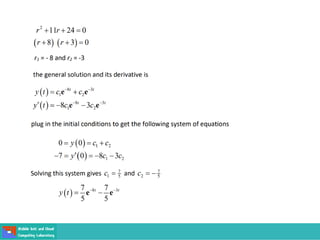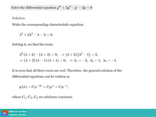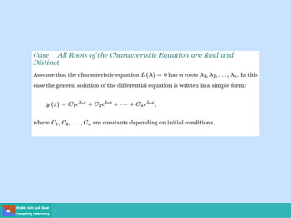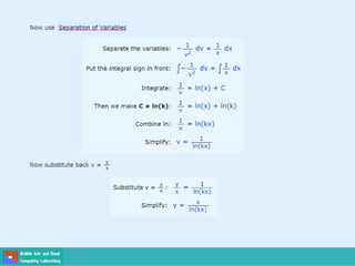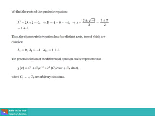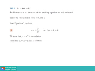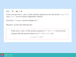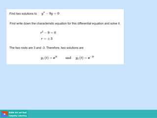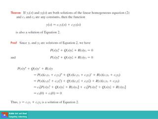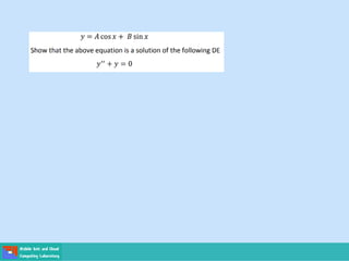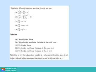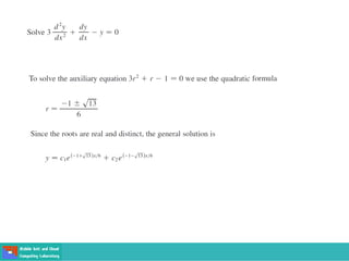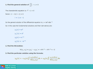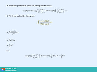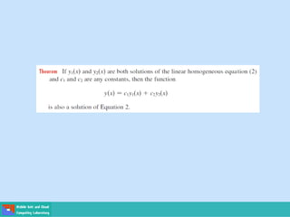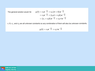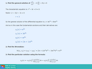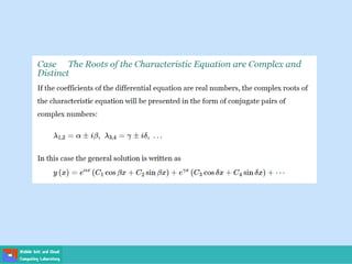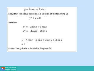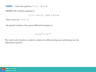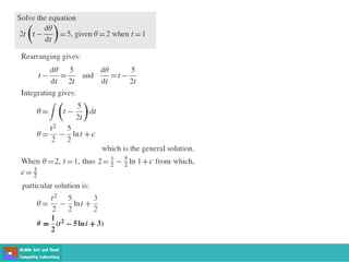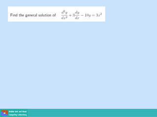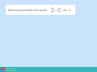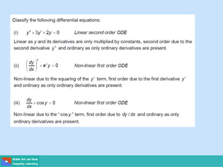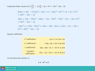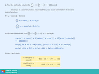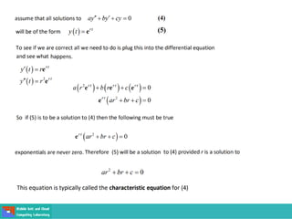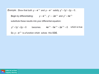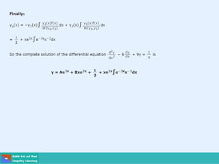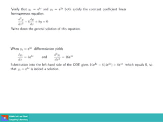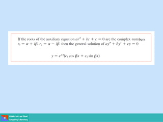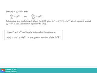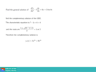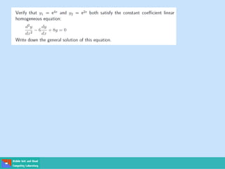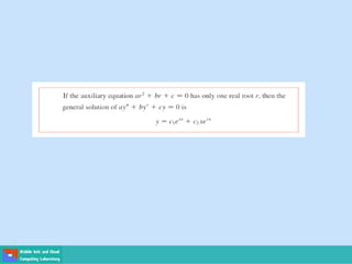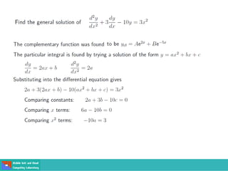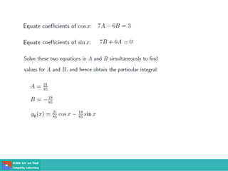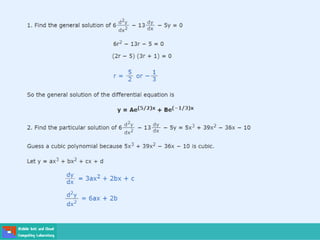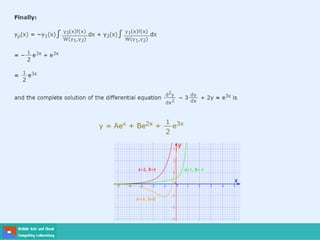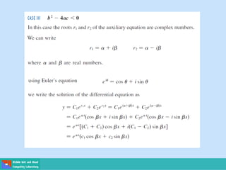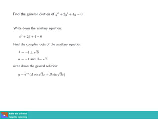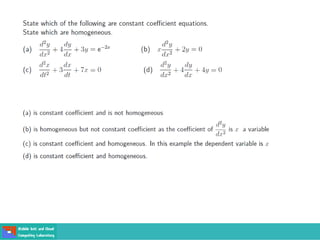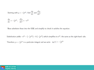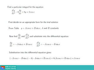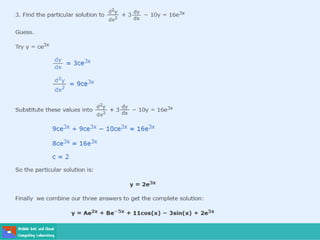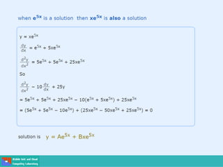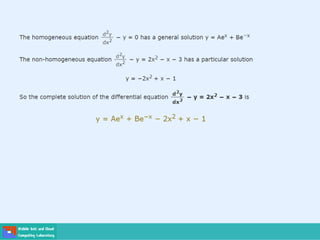 - Second order differential equations have solutions called complementary functions and particular integrals.