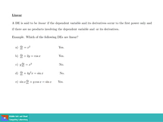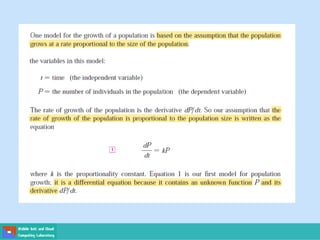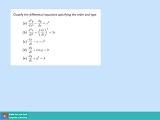 This document contains lecture slides on engineering mathematics from Sayed Chhattan Shah. It introduces differential equations and their applications. Some key points covered include: