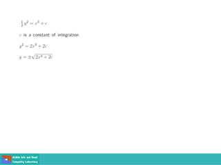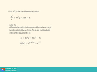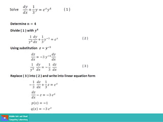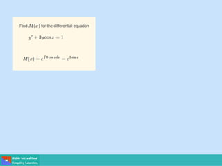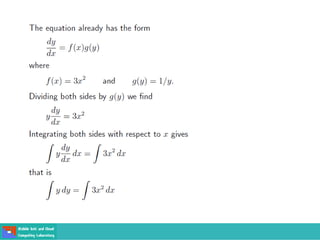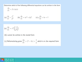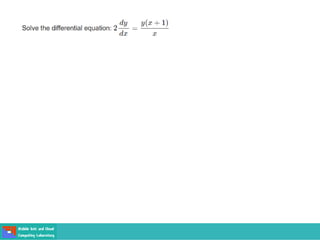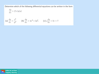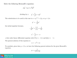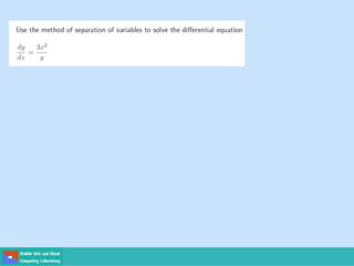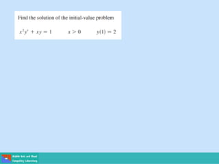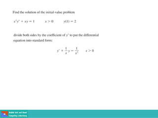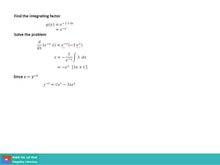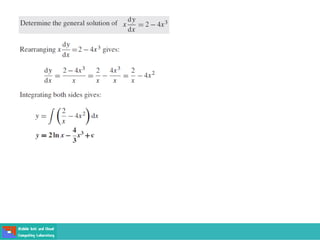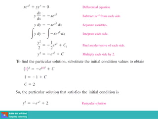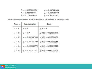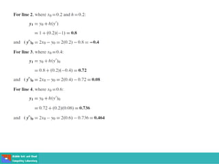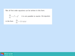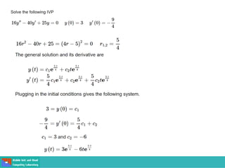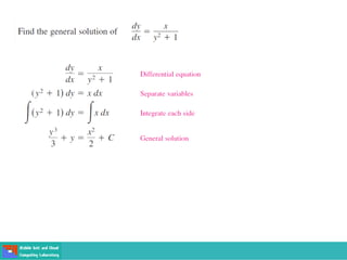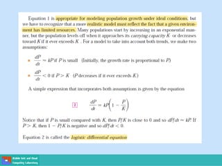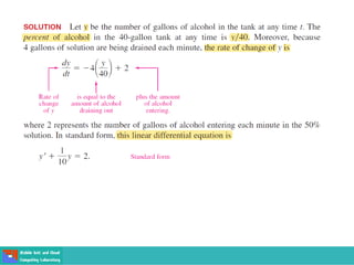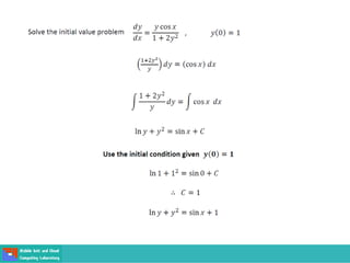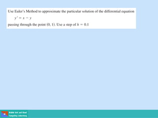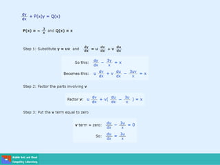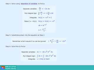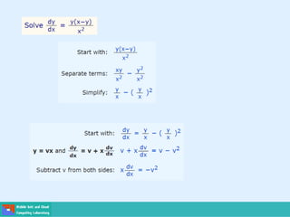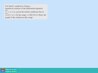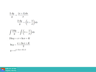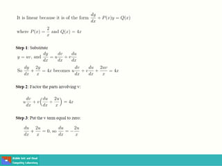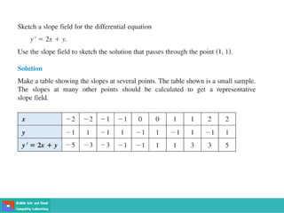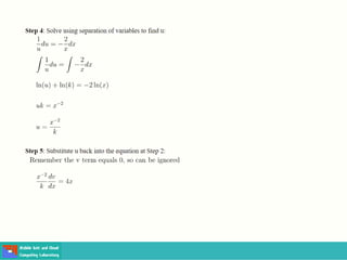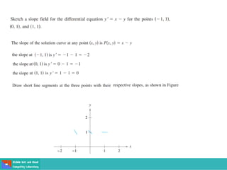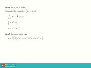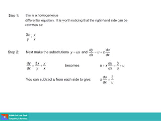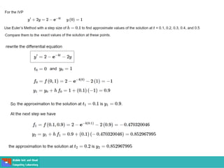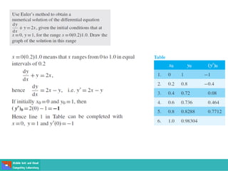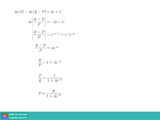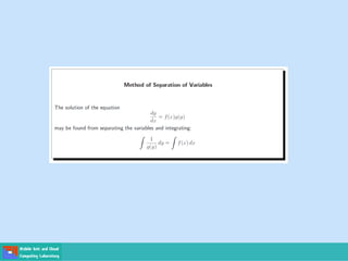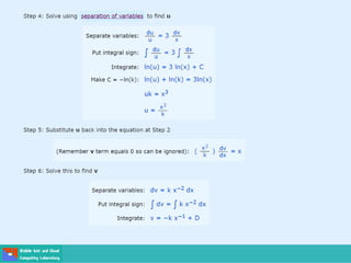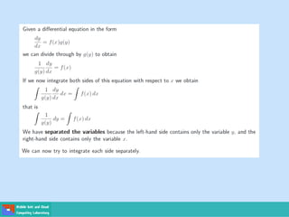 - Methods for solving differential equations include separation of variables, integrating factors, and numerical methods like Euler's method.