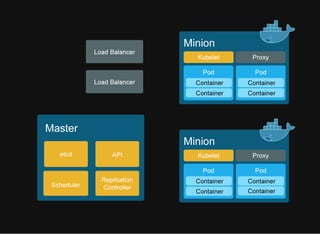 The document provides an overview of Docker, explaining its architecture, basic commands, and the differences between containers and virtual machines. It details the Docker workflow, including building and running containers, managing images, and pushing images to a registry, along with insights into Linux kernel features that support containerization. Additionally, it touches on orchestration tools, container security, and the benefits of using containers for development and operations.