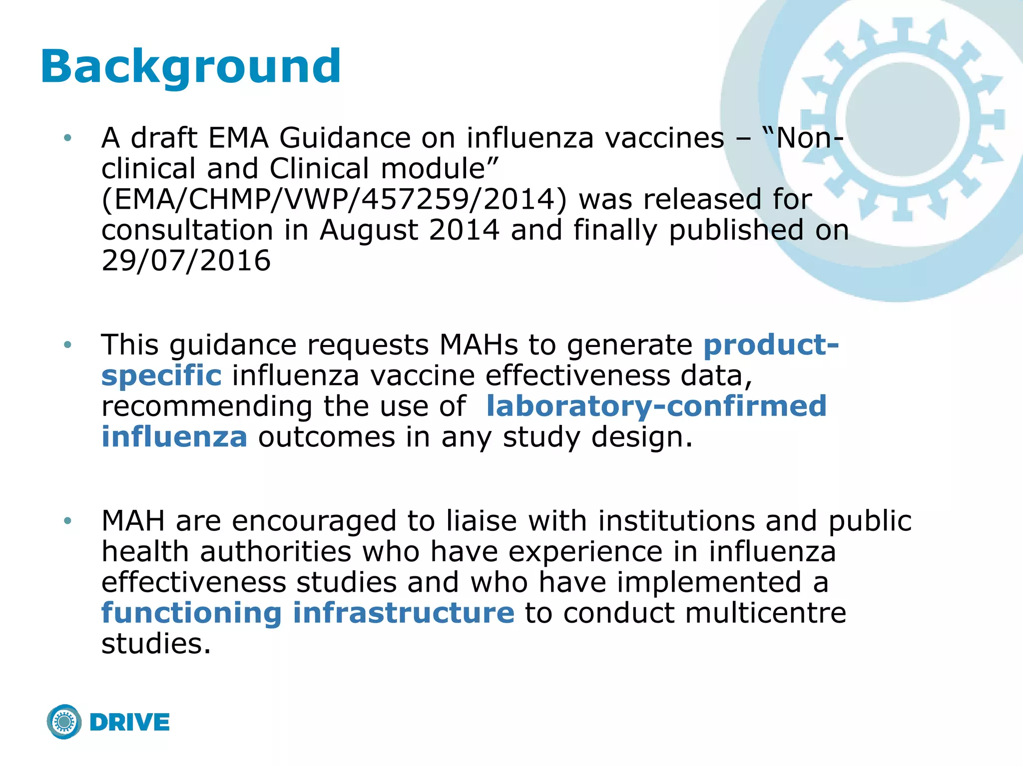 This document summarizes the challenges of conducting brand-specific influenza vaccine effectiveness studies in Europe. It notes that methodological issues like differences in vaccine administration, circulation of strains between countries, and study designs and settings make pooling data challenging. Existing surveillance systems like I-Move only estimate overall effectiveness, not brand-specific. The costs of expanding systems to allow brand-specific estimates would be very high, around 3-10 million euros per year. Additional challenges include low and varying vaccination rates, vaccine tenders that impact brand distribution, and lack of reliable brand-level data in most countries. Public health authorities control the data but manufacturers need oversight due to regulatory requirements. Improvements will take time and investment.
