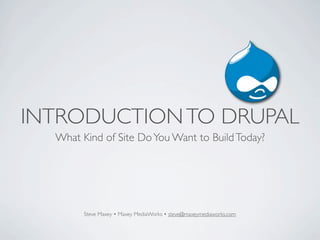 The document provides an introduction to Drupal, detailing its capabilities as a content management system (CMS) and comparing it with other popular platforms like WordPress and Joomla. It includes the author's background and experience in web development, highlights the features of Drupal such as its extensibility and user permission controls, and offers resources for further learning. The history of Drupal and its modular structure are also discussed, emphasizing the importance of not altering the core functionalities.