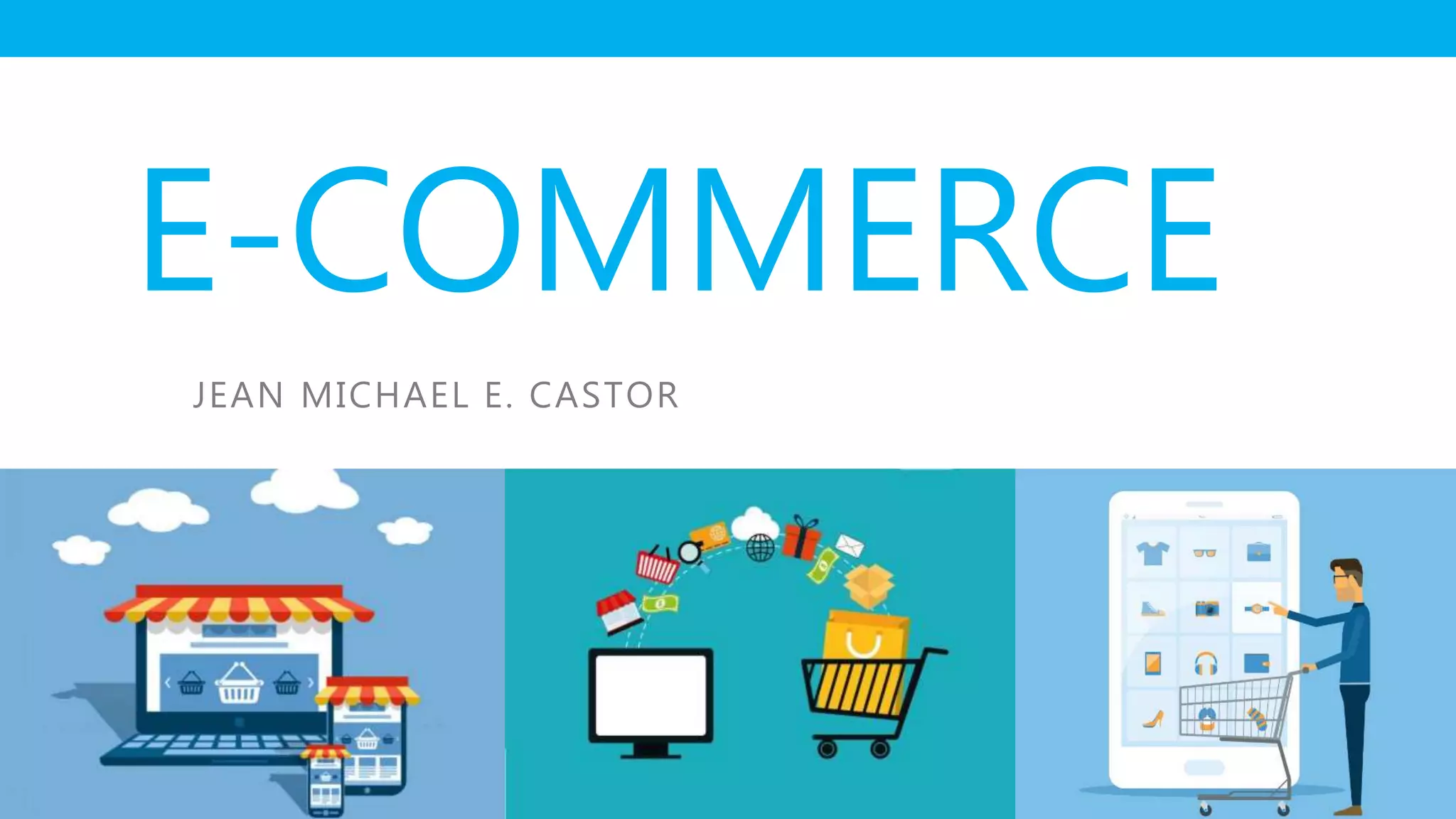 The document discusses e-commerce, including definitions of electronic commerce and why businesses should use e-commerce. It describes how e-commerce allows businesses to expand their reach, understand customers better through data analytics, and analyze the overall market. The document also covers elements of business models, trends in e-commerce products, competitive advantages, potential drawbacks of e-commerce, and international issues. It provides steps to build an e-commerce website and considerations around costs and timelines.