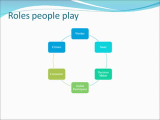 This document discusses the production line process for manufacturing cars. It begins with the production line where parts like computer components and keyboards are assembled. It then discusses distribution of the finished cars to consumers who will consume and use the goods and services.