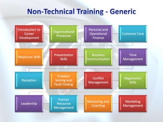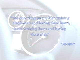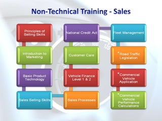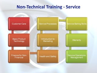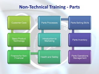 Equal Career Services (ECS) provides automotive training and development services. ECS has been registered since 2000 and is accredited by Merseta. It offers a wide range of human resources and operational development programs for the automotive industry, including assessments, technical and non-technical training, and consulting. ECS employs experienced facilitators and has a training administration department to develop assessment and training materials. It provides programs such as learnerships, skills programs, and cadet programs.