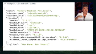 Elasticsearch is a document-oriented database designed for storing and retrieving semi-structured data in JSON document form. Developed by Shay Banon, it was first released in 2010 as an open-source project aimed at providing real-time search capabilities through an inverted index. Key concepts include clusters, nodes, indexes, and shards, which work together to facilitate efficient data management and querying.