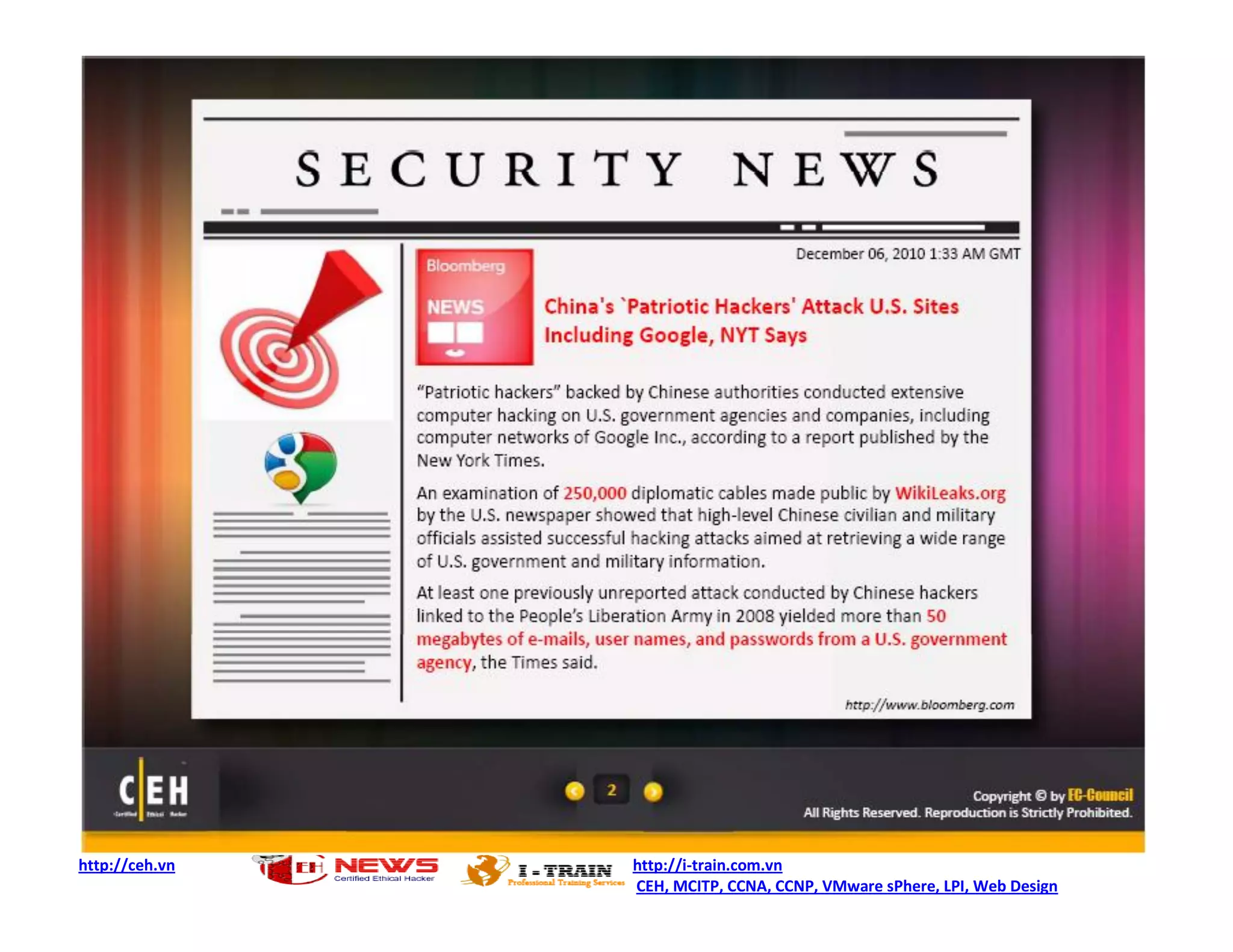 The document repeatedly lists training courses for various IT certifications including CEH, MCITP, CCNA, CCNP, VMware sPhere, LPI, and Web Design. It also provides URLs for the websites http://ceh.vn and http://i-train.com.vn on each line, suggesting these websites provide information on or training for the listed IT certification courses.