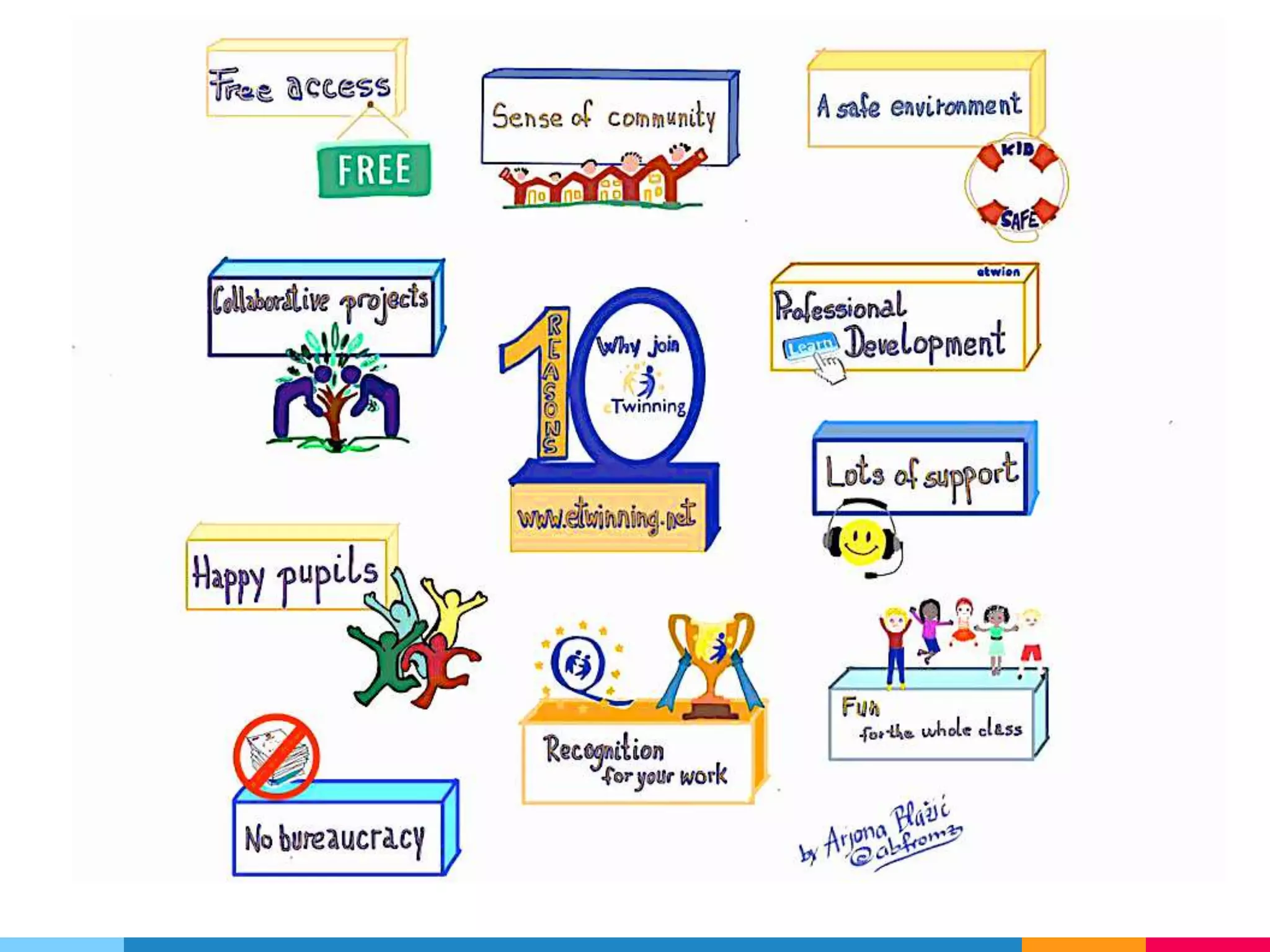 This document provides an overview of eTwinning, which is an online community for schools in Europe that allows students and teachers to collaborate on projects. It highlights some key benefits of eTwinning projects including that they are peer-learning opportunities that promote cross-cultural exchange, teamwork, and the development of skills through an interdisciplinary approach. eTwinning projects also provide motivation for students and help develop innovative teaching methods while bringing a European dimension to the classroom.