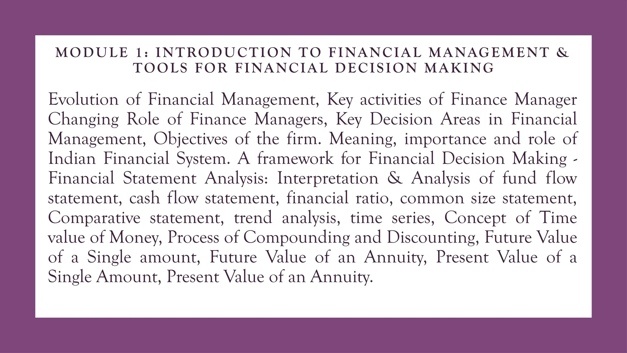 The document provides a comprehensive overview of financial management, covering fundamental concepts such as financial decision-making, capital budgeting, sources of finance, working capital management, and cost of capital. It emphasizes the role and responsibilities of financial managers, the importance of financial planning, and the components of the financial system. Additionally, it outlines financial statement analysis as a critical tool for evaluating company performance and making informed decisions.