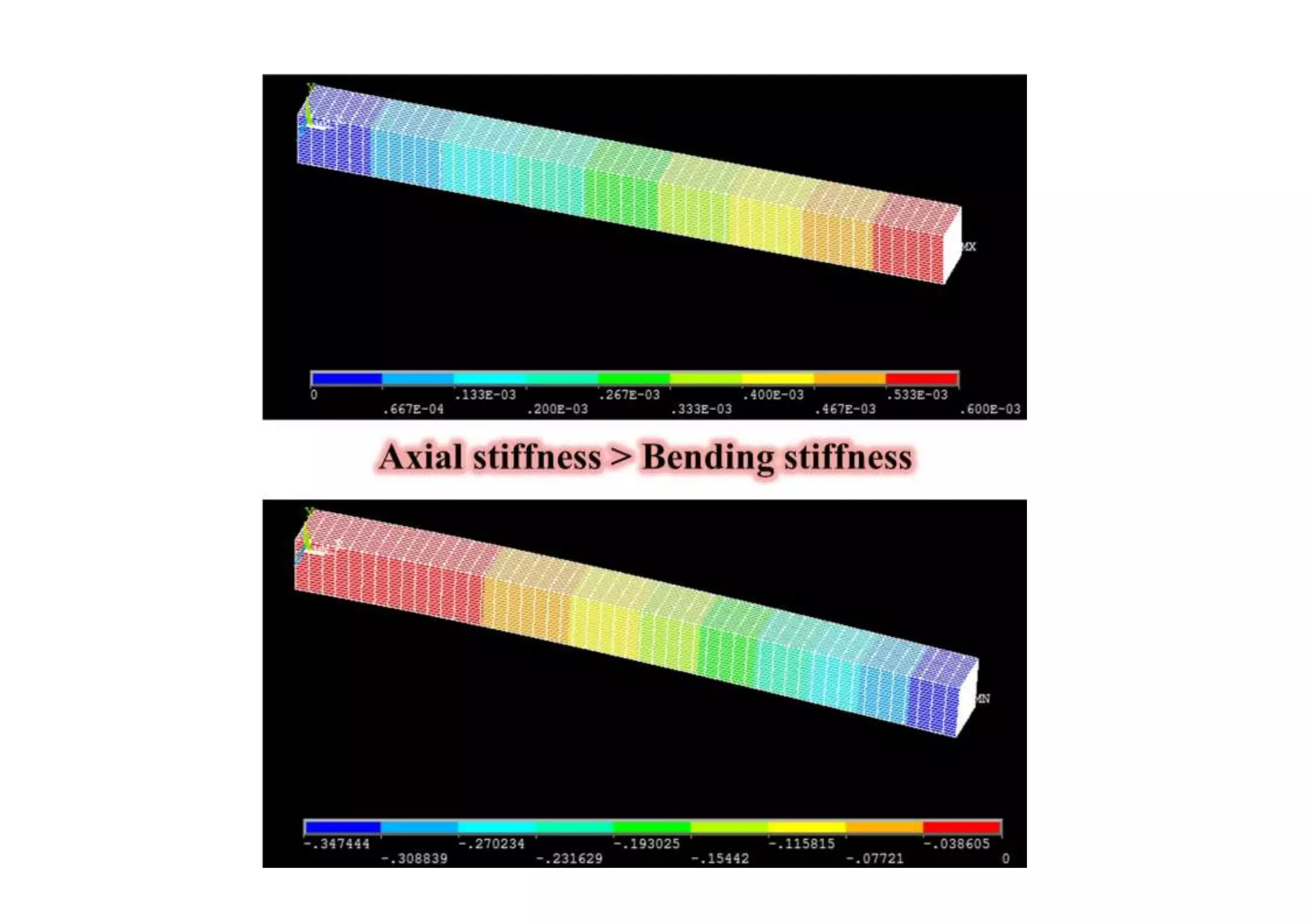 magnitude of max stress and deflection in a structure.