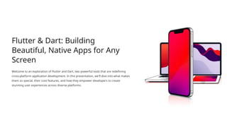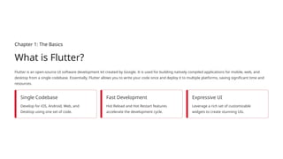 This presentation introduces Flutter, an open-source UI software development toolkit created by Google. It explains how Flutter enables developers to build cross-platform applications (Android, iOS, Web, and Desktop) using a single codebase. The PPT covers the need for Flutter, its advantages and disadvantages, and real-world examples of apps developed with Flutter such as Google Ads, Dream11, Alibaba, and BMW. It is designed to help students and professionals understand why Flutter is considered a revolutionary tool in software engineering and mobile app development.