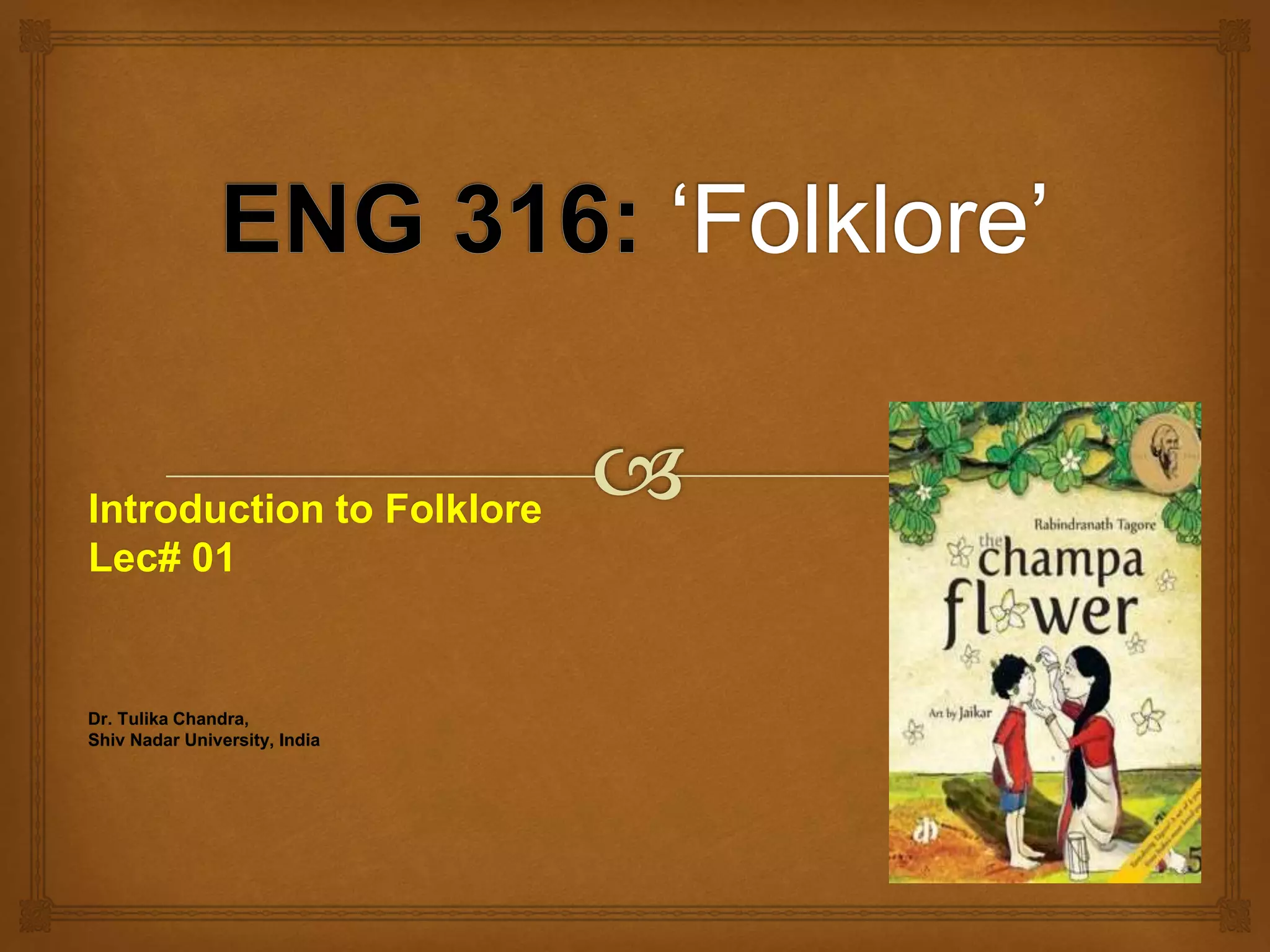 The document provides an introduction to folklore, defining it as the traditional cultural expressions of various folk groups, including tales, legends, customs, and beliefs communicated orally within communities. It traces the history of folklore studies, noting how early conceptions viewed folklore as belonging to illiterate or marginalized groups, but fieldwork in the early 1900s revealed the similarities between all human cultures. The definition of folklore then broadened to recognize that folk traditions can exist within any collective group. The document also examines different scholars' definitions of folklore and provides examples of topics that folklore can encompass.