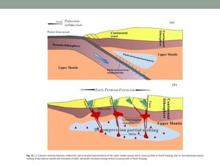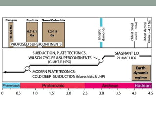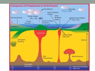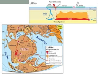 This document discusses key concepts in geodynamics including large low shear-wave velocity provinces beneath Africa and the Pacific known as Tuzo and Jason that may be plume generation zones related to large igneous provinces and volcanic exhalative processes. It examines large low shear-wave velocity provinces and their potential connections to mantle plumes, hotspot volcanism, and volcanic exhalative processes.
