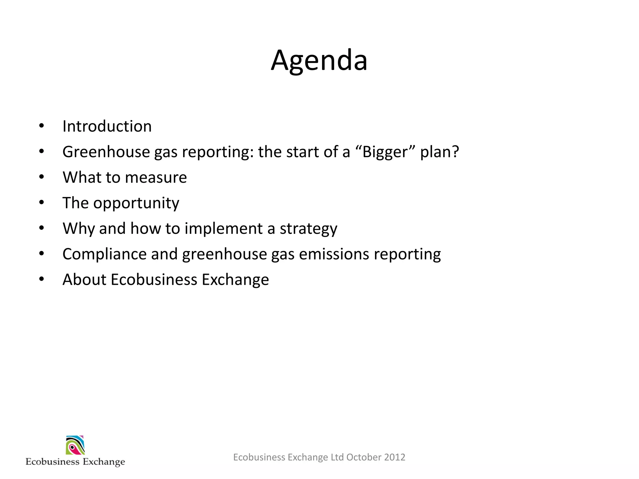 The document outlines the upcoming legislation requiring UK main market listed companies to report their greenhouse gas emissions, effective from 2013. It emphasizes the opportunity for companies to adopt proactive sustainability strategies that can reduce emissions and costs, while also engaging stakeholders. The report provides guidance on implementation steps for compliance and highlights the potential benefits that can arise from effective greenhouse gas reporting.