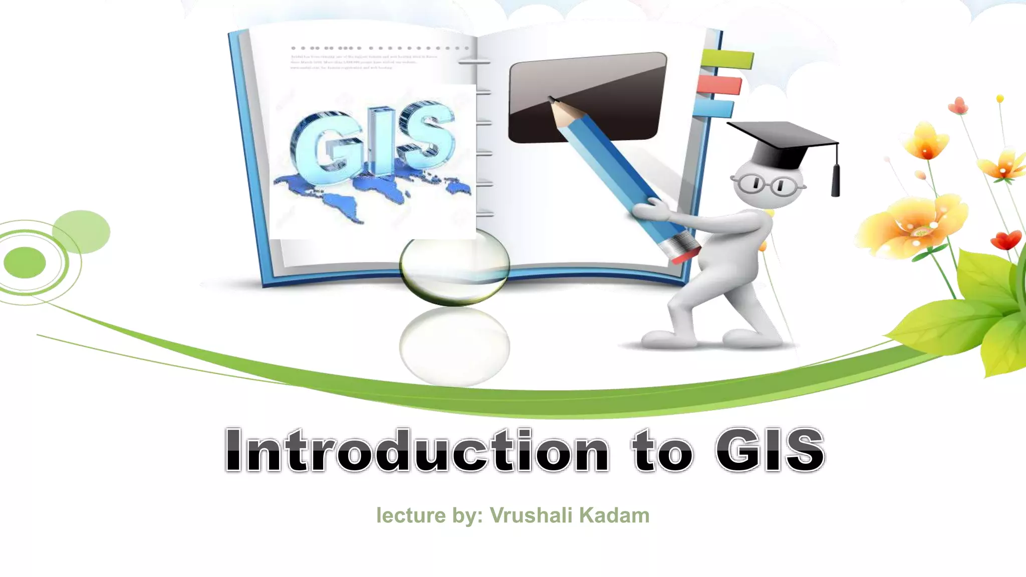 GIS is defined as a computer system for capturing, storing, analyzing and displaying spatial data. It allows for the collection, management, and analysis of large datasets to help identify patterns and relationships. GIS has many applications including agriculture, land management, natural resource monitoring, disaster response, and more. Key components of a GIS include spatial data layers, attribute tables, and analysis tools to solve problems and make informed decisions.