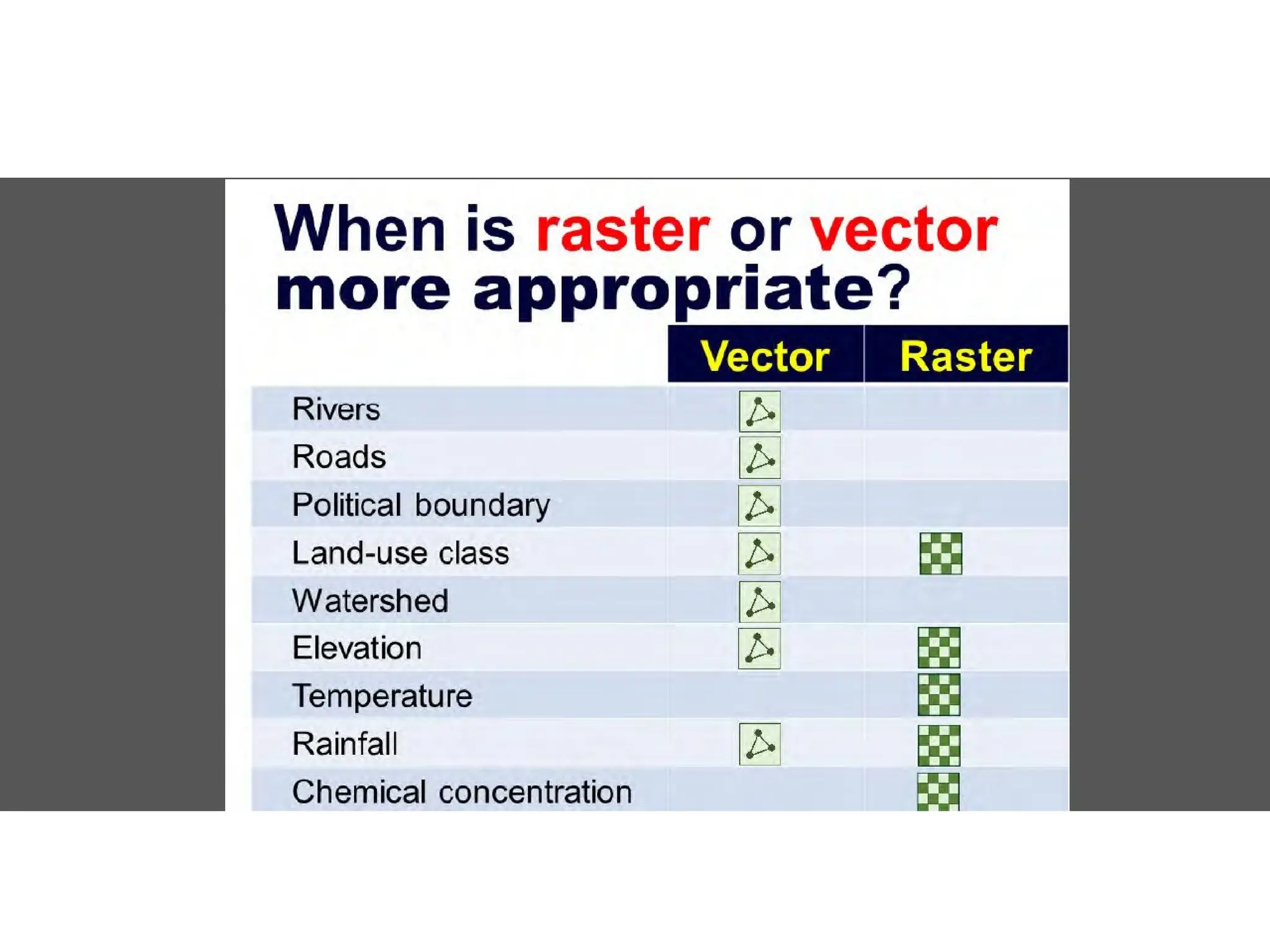 - Maps can model the world in more than one way