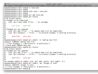 Git is a distributed version control system that was created by Linus Torvalds as an improvement over centralized systems like Subversion; it works by tracking changes to files and committing snapshots of changes locally or to a remote server, and has a flexible branching workflow that allows users to work independently and merge changes together. The document provides an introduction to basic Git concepts, commands, and workflows for versioning code and collaborating through branching and merging changes.