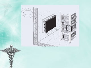 4- Monitoring Keepthe storeroom well ventilated (see section on humidity) For better ventilation, store boxes on pallets and leave room between rows of stacked boxes (see section on arranging products)