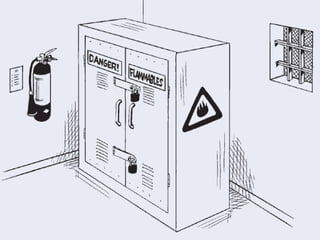 Flammables  In addition, the shelves of the cabinet should be designed to contain and isolate spillage