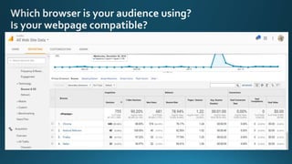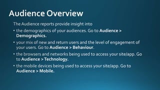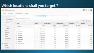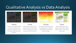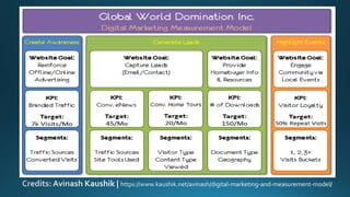 The document outlines a digital marketing course by Avik Bal that focuses on analytics and data interpretation for decision-making, including case studies like Panasonic's use of Google Analytics 360 to enhance advertising ROI by 30%. It covers various analytical tools, strategies for measuring social media success, and key steps for implementing effective digital marketing practices. Additionally, the course offers certification opportunities in Google Analytics and emphasizes the importance of tracking customer behavior and goals in a data-driven environment.