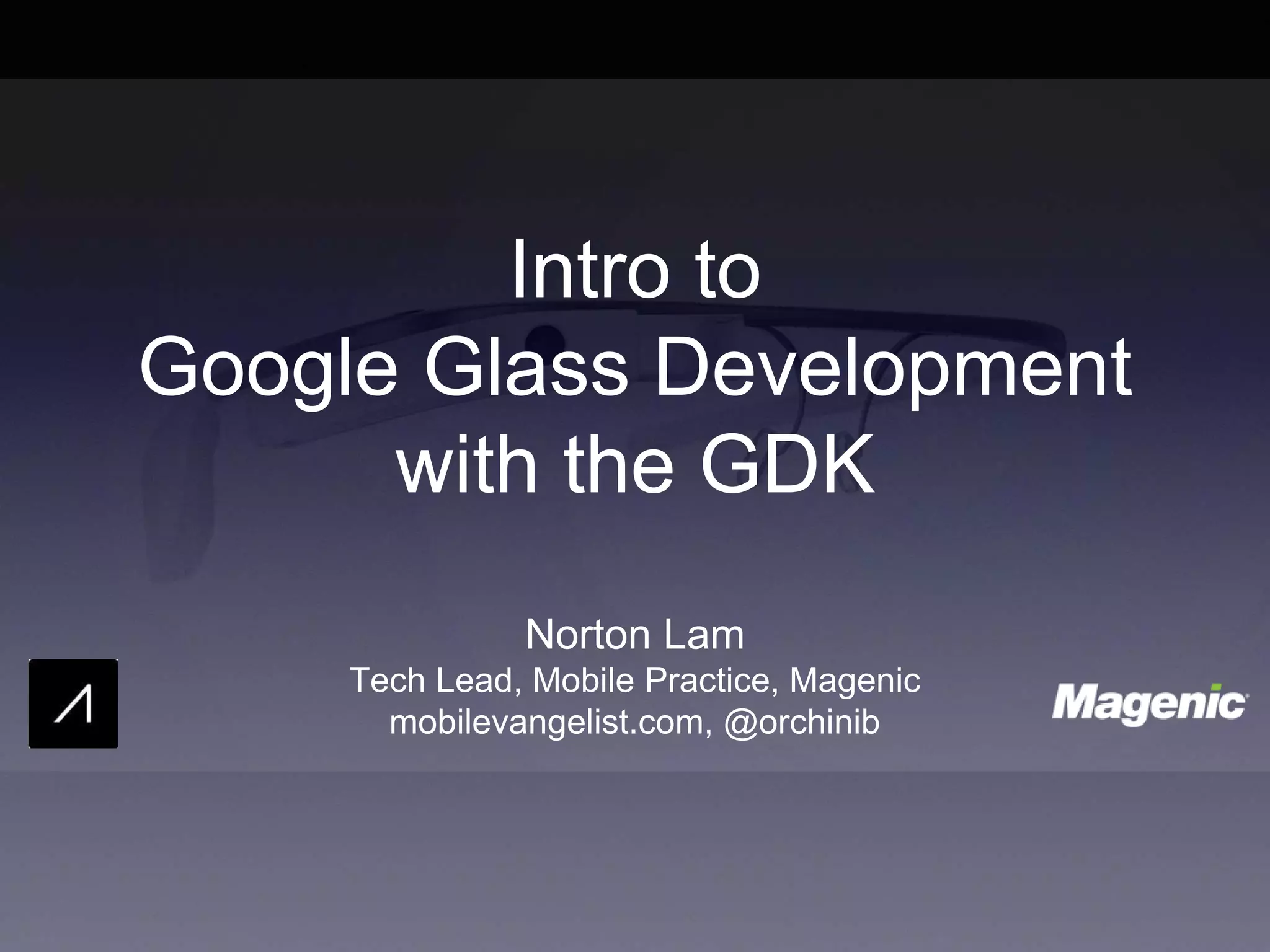 The document provides an introduction to Google Glass development, outlining its features as a wearable computer with a display akin to a 25" screen from a distance. It details the capabilities of the Glass Development Kit (GDK), including platform independence and real-time user interaction, as well as the hardware specifications and user experience components. Additionally, it includes code examples for developers to start building applications for Google Glass.