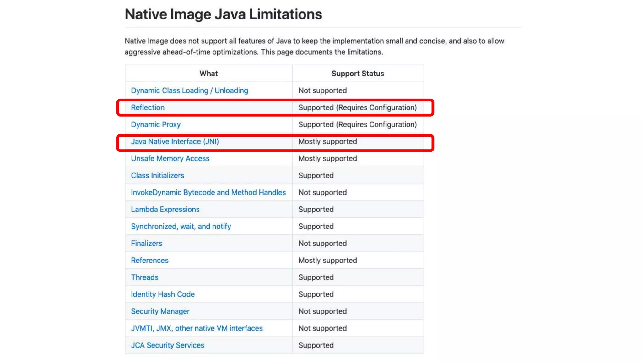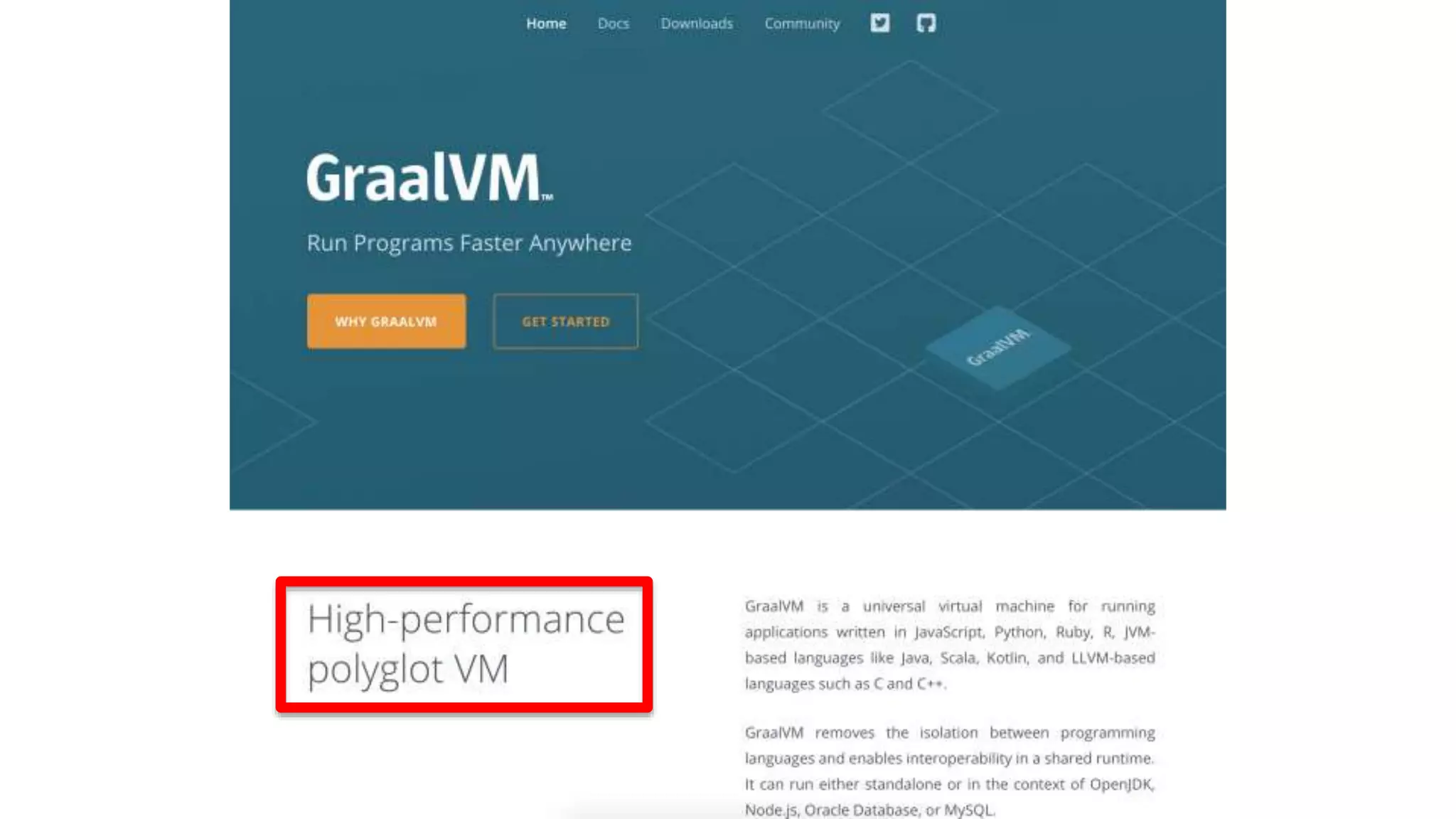 This slide is about GraalVM, especially SubstrateVM that is able to generate native images.