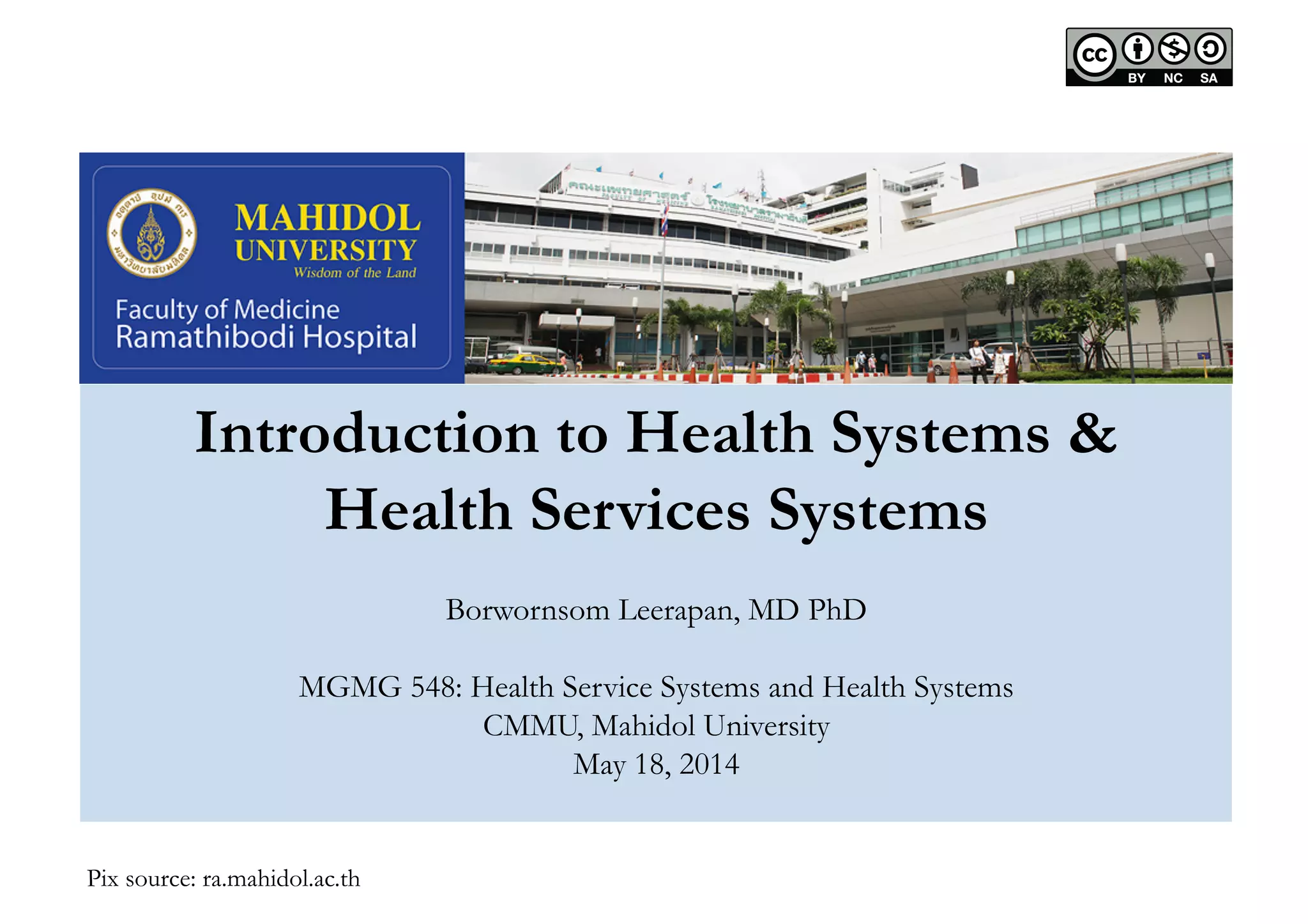 The document provides an overview of a course on health service systems and health systems. It discusses several topics that will be covered in the course, including major issues in organizing health services, assessing population health status, analyzing healthcare access and costs. The course will also examine sociopolitical, economic, and ethical issues facing public health systems. Students will learn about different components of health systems through mini-lectures, discussions, and by analyzing case studies.