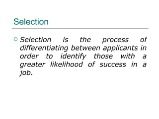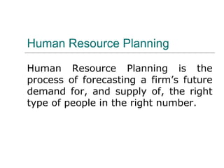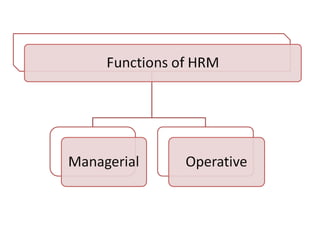 Human resource management deals with managing an organization's employees or human resources. The objectives of HRM are to improve employee morale and performance to accomplish organizational goals, recognize individual needs through adequate compensation and benefits, and develop a quality work environment. HRM is important for attracting and retaining talent, developing employee skills, motivating workers, utilizing resources effectively, and maintaining good employee relations. Some of the key challenges faced by HR managers include a changing workforce, globalization, quality improvement demands, and adapting to changing employee expectations.