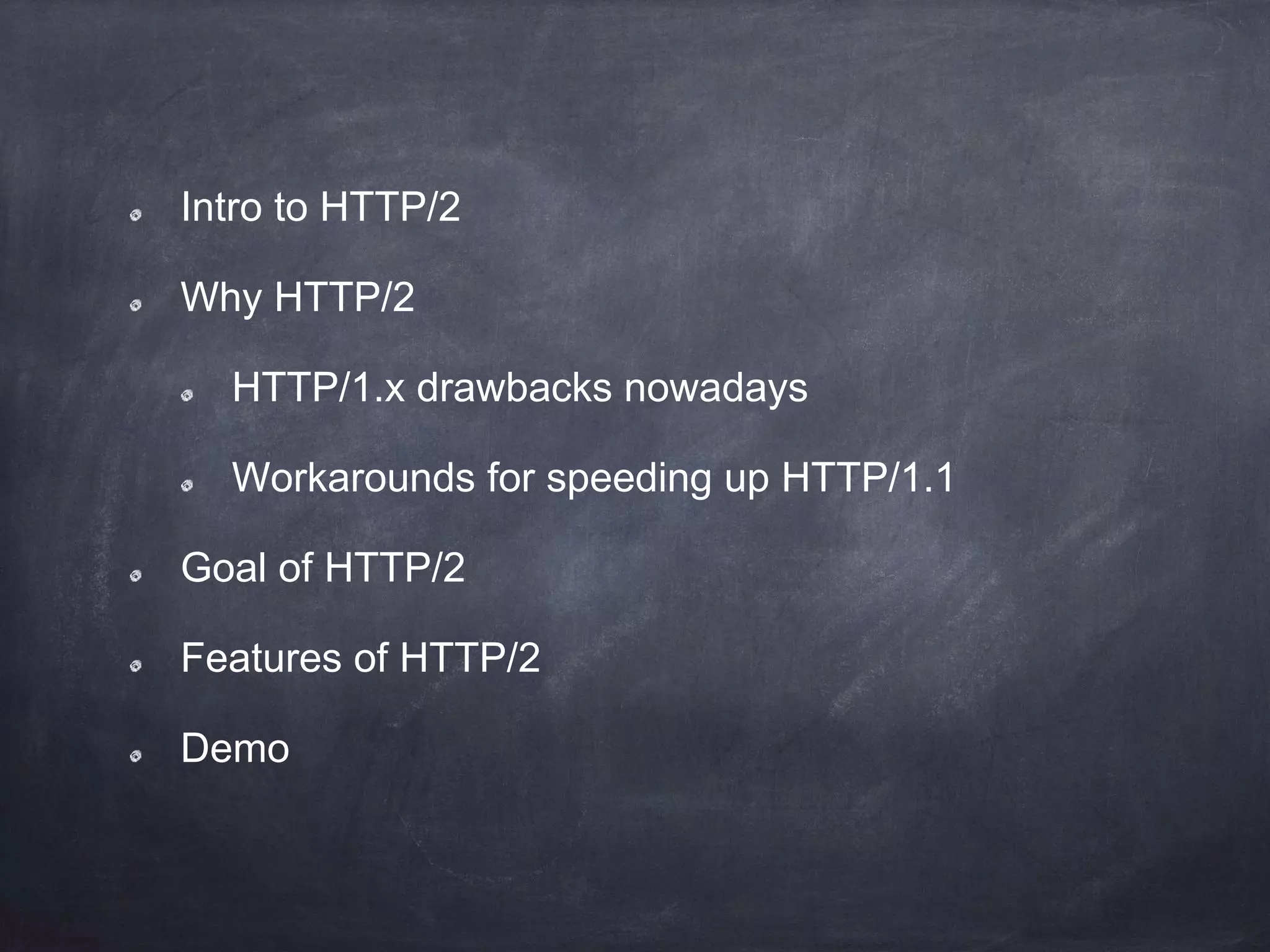 - HTTP/2 aims to address these by being binary based, multiplexed, compressed and allowing server push.
