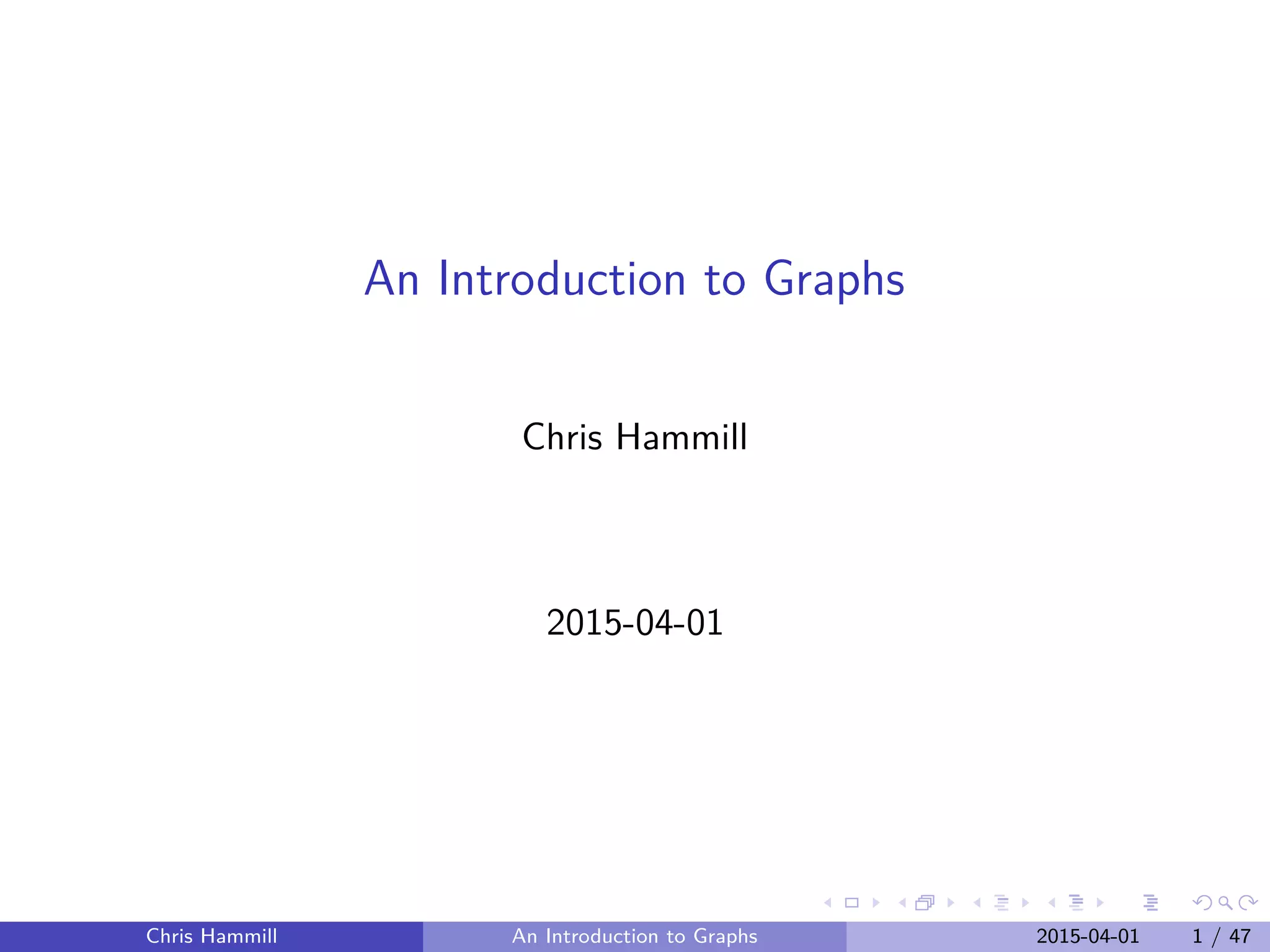 The document provides an introduction to graphs presented by Chris Hammill. It begins with an outline of the topics to be covered, which include introducing graphs and the igraph package in R, interactive analysis using Shiny, the diabetes research project, demonstrating a Shiny app for the project, and offering additional resources. The goal is to teach about graphs through discussing Hammill's research, demonstrating useful R packages, and getting the audience excited about interactive data analysis.