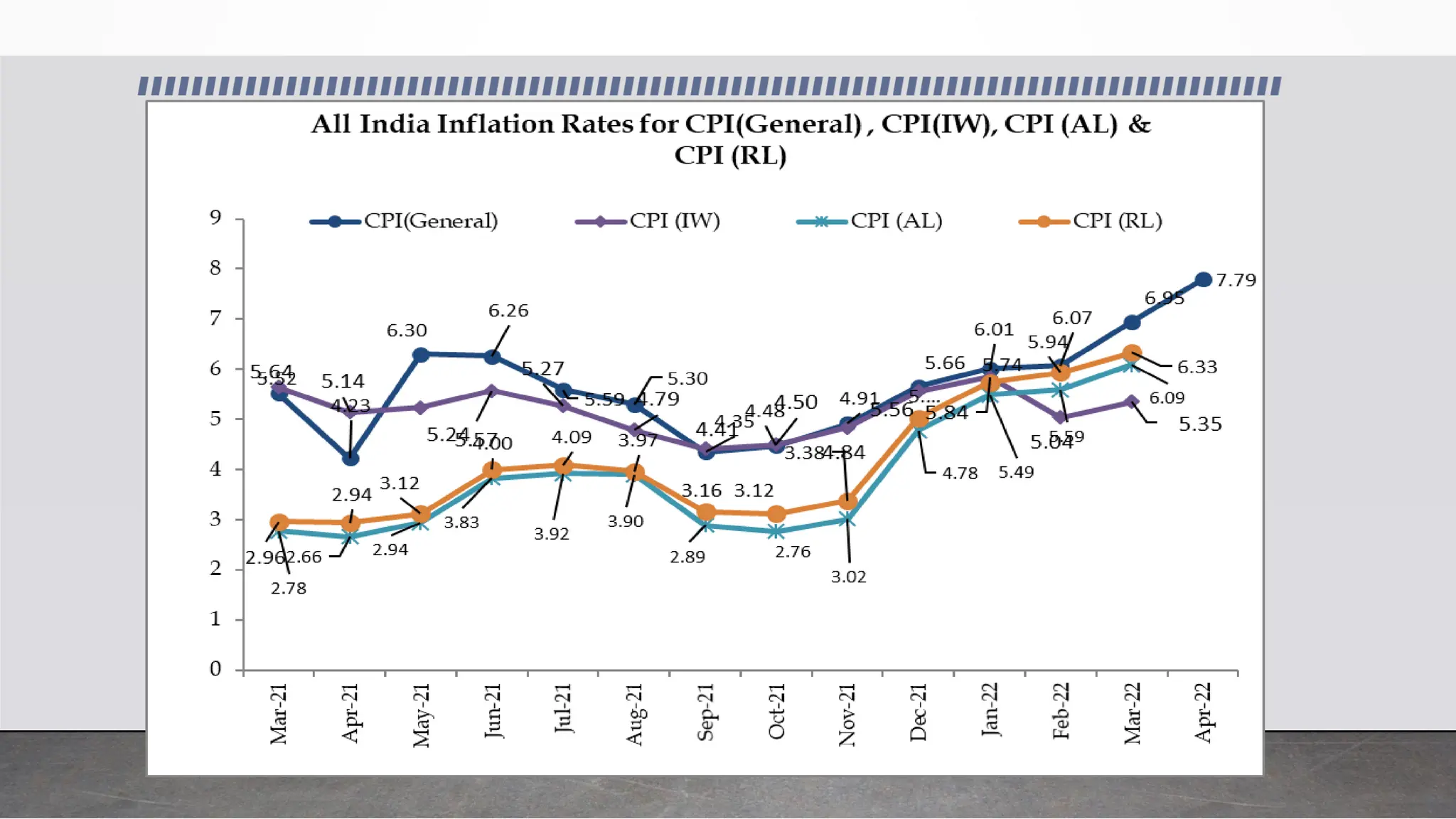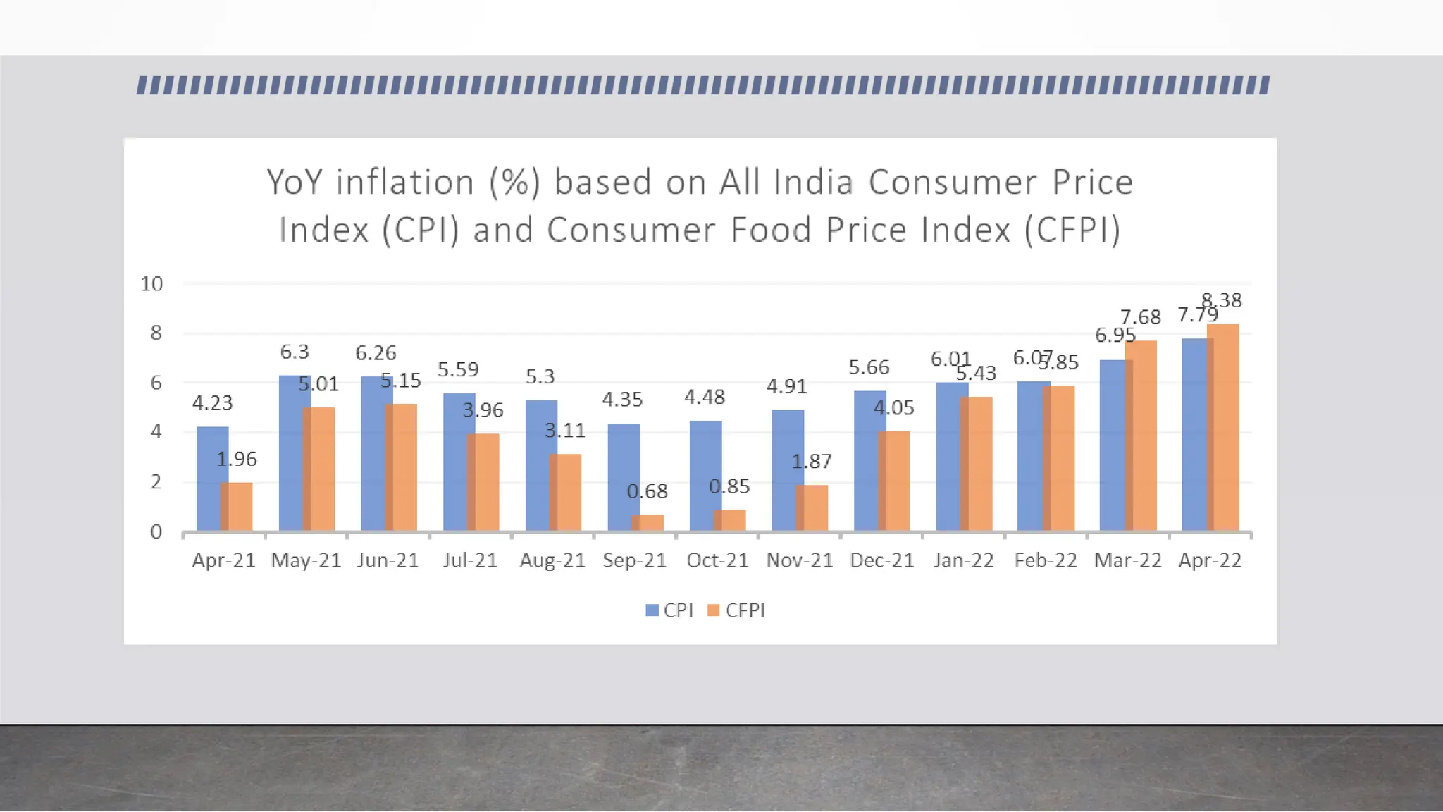 Inflation of Apr 22 = [(Index of Apr 22/Index of Apr 21)-1] x 100.