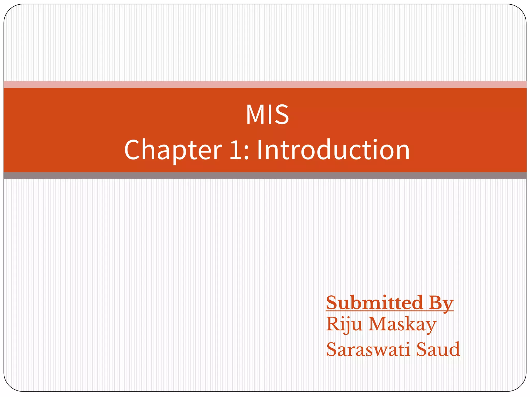 The document provides an overview of organization and management, detailing key components such as organization structure, culture, and management levels. It discusses types of systems, particularly information systems, and their roles in supporting business processes and decision-making. Additionally, it addresses managerial challenges related to information technology and the interrelation between information technology and information systems.