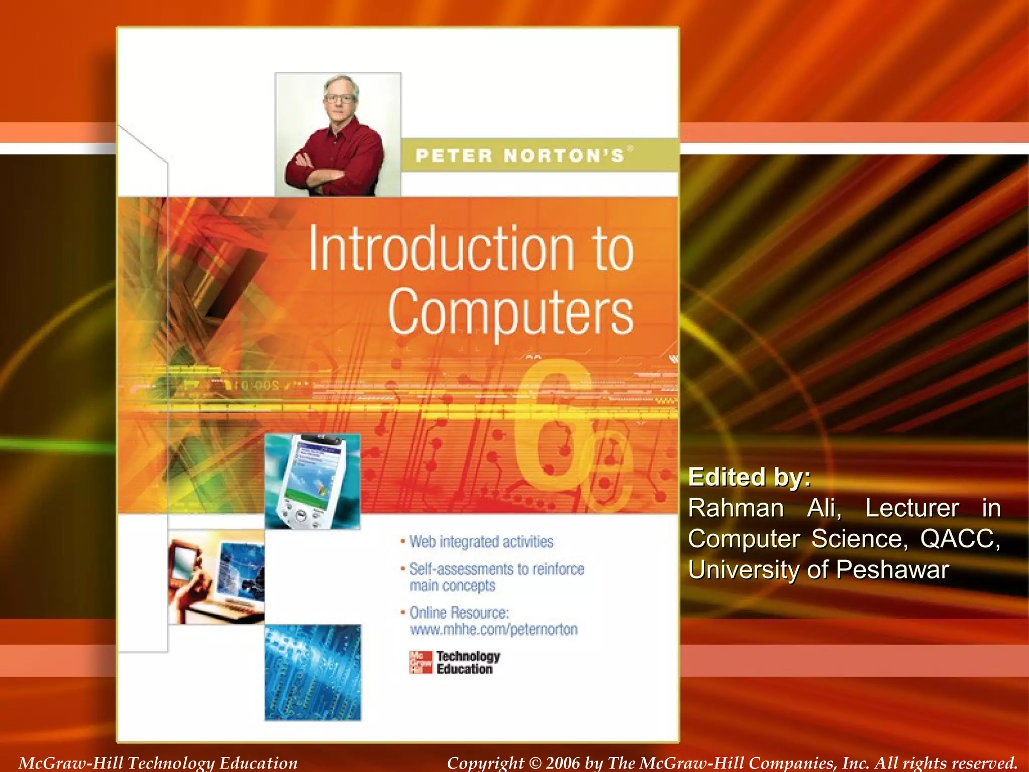 The document discusses the key components of a computer system. It describes the four main parts as hardware, software, data, and users. It then provides details on the essential computer hardware, which it categorizes as input devices, memory devices, processing devices (CPU), output devices, and storage devices. It discusses the functions of these components and gives examples. It also covers the information processing cycle, types of software (system software and application software), and the role of computer users.