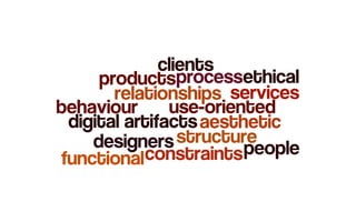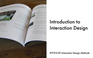 The document introduces interaction design as a process focused on creating user-oriented qualities of digital artifacts within constraints. It discusses design methods, communication in design, and references various works related to research-based design processes. The content is aimed at understanding the principles and methodologies associated with interaction design.
